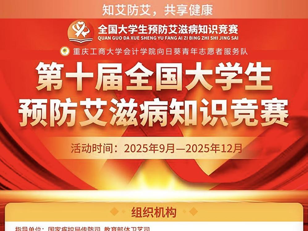 为提升全校师生对艾滋病的科学认知与防范能力,筑牢自我保护防线,消除歧视偏见,营造和谐包容的校园氛围,11月3日,由k1体育向日葵青年志愿者服务队主办的第十八届“红岩铸魂·筑梦启航”志愿文化节系列活动之“知艾防艾,共享健康”线上防艾知识竞赛正式启动。活动面向全校师生开放,将持续至12月15日。