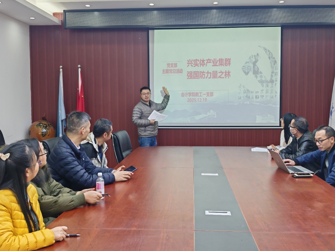 2025年12月18日,k1体育教工一支部在明德楼2019会议室,召开党员大会并举办名为“兴实体产业集群,强国防力量之林”的主题党日活动。活动由支部书记蒋弘主持。