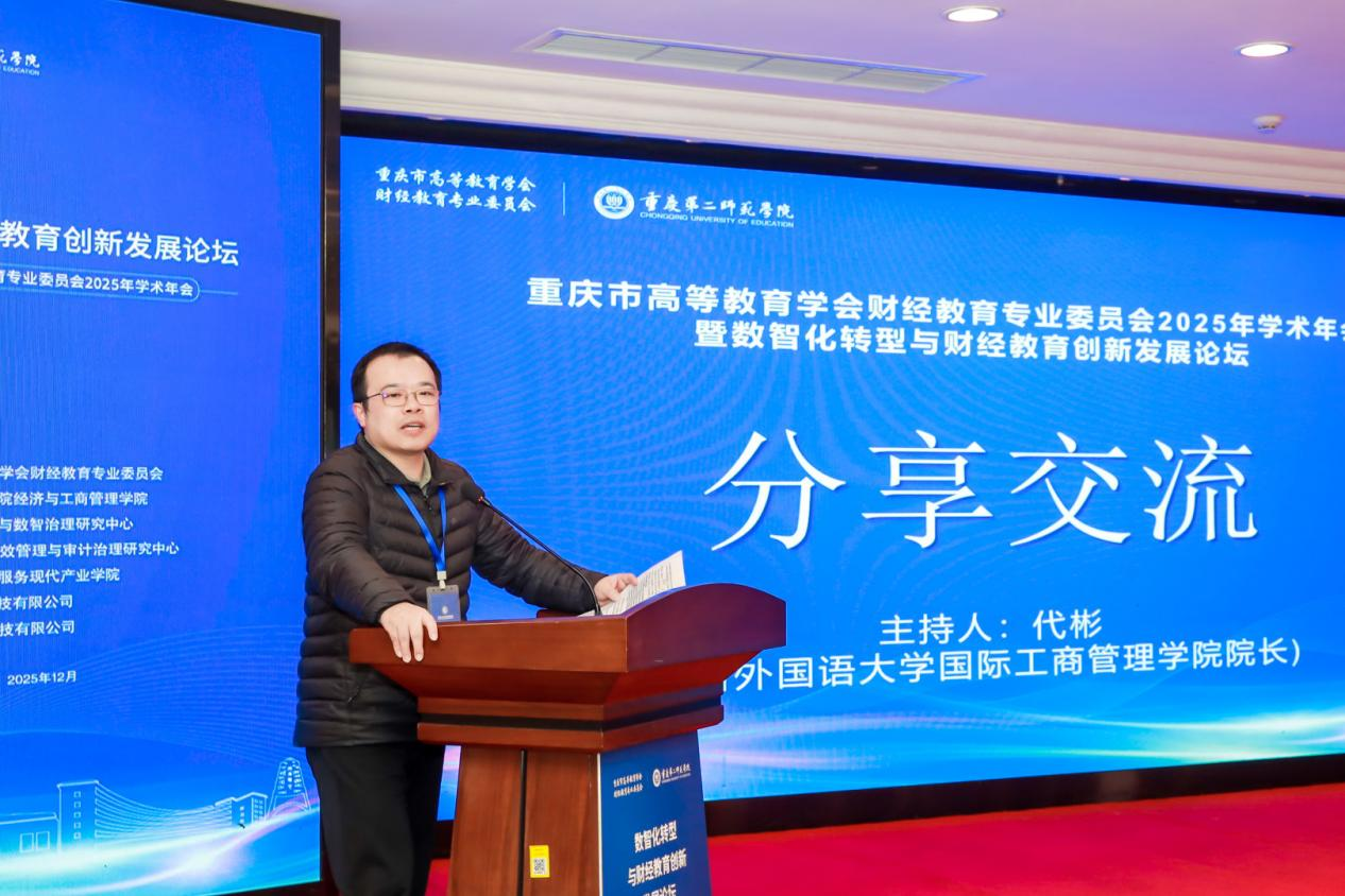 分享交流环节由四川外国语大学国际工商管理学院经理代彬教授主持。全国模范教师、重庆理工大学陈旭教授,重庆第二师范学院袁柏乔副教授,国家黄炎培职业教育奖杰出教师奖获得者、重庆财经职业学院陈祥碧教授以及国家教学成果奖获得者、沈阳跃客教育科技有限公司付伟总经理分别以《技术赋能,提升“查、算、审、溯”四大核心会计数据处理能力》《〈商业模式教程〉:从开发到创新的蜕变之旅》《人机协同,靶向解难——数智赋能下的精准教学实践》《基于财务智能体的财会审综合实践课程设计与开发》为题,分享了他们近年来在教学内容创新、课程资源建设、教学模式改革、产教融合实践等方面的经验和成果。