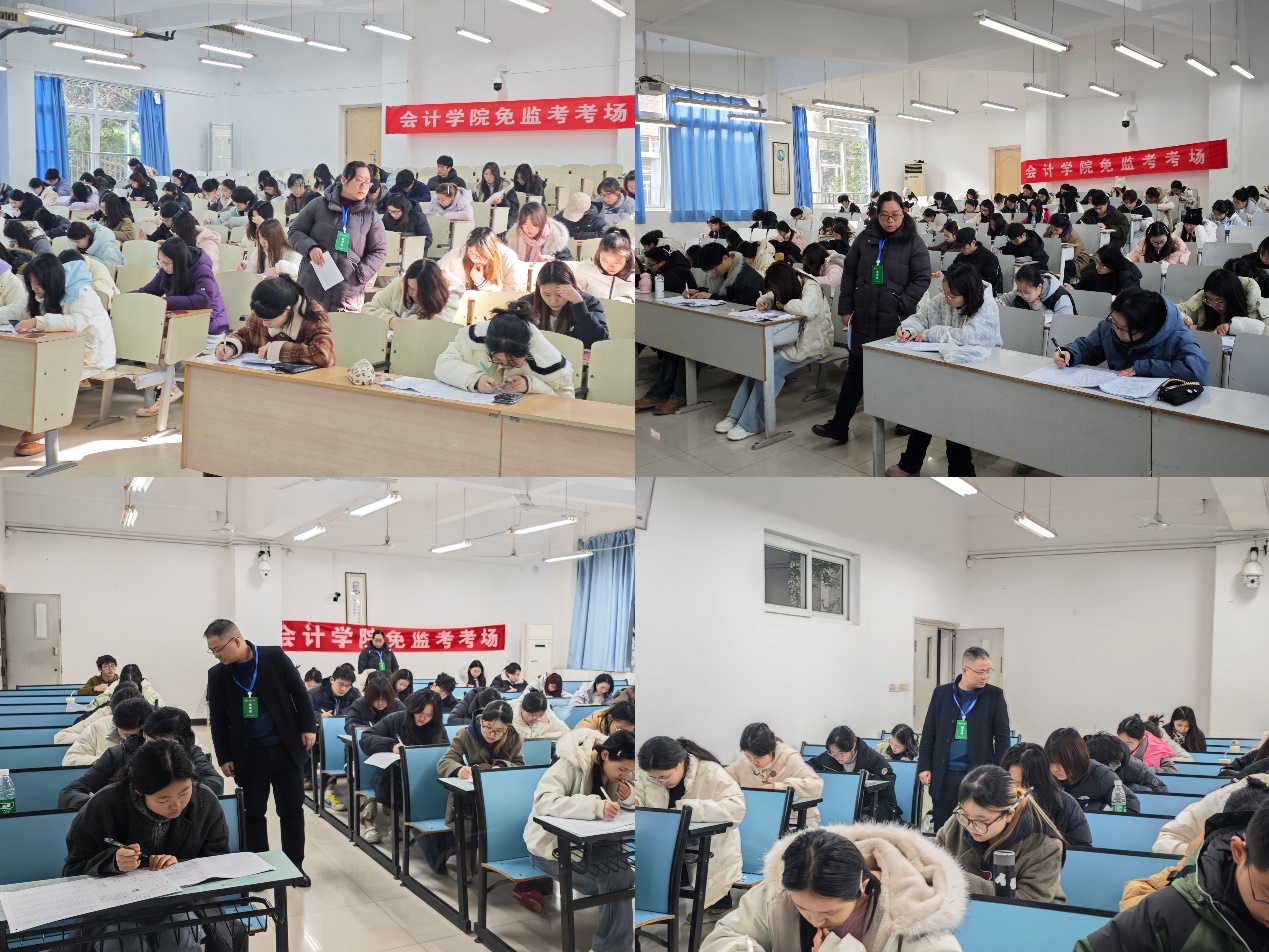 2025年12月30日、31日,2026年1月12日、13日,公司2024级、2025级共24个班级的1058名学子参与了这场特殊的诚信考验。其中,2024级班级包括:24CIMA班、24ACCA1班、24ACCA2班、24会计一班至三班、24资产班、24审计一班、二班、24财务一班、二班;2025级班级包括:25CIMA班、25ACCA1班、25ACCA2班、25ACCA3班、25会计一班至五班、25财务一班、二班、25审计一班、二班。考试在南岸校区博智楼07121、07308、07221等教室及兰花湖片区广智楼20213、20201、20111等教室开展,考试科目为《专业英语》、《基础会计学》、《审计学》与《中级财务会计》。