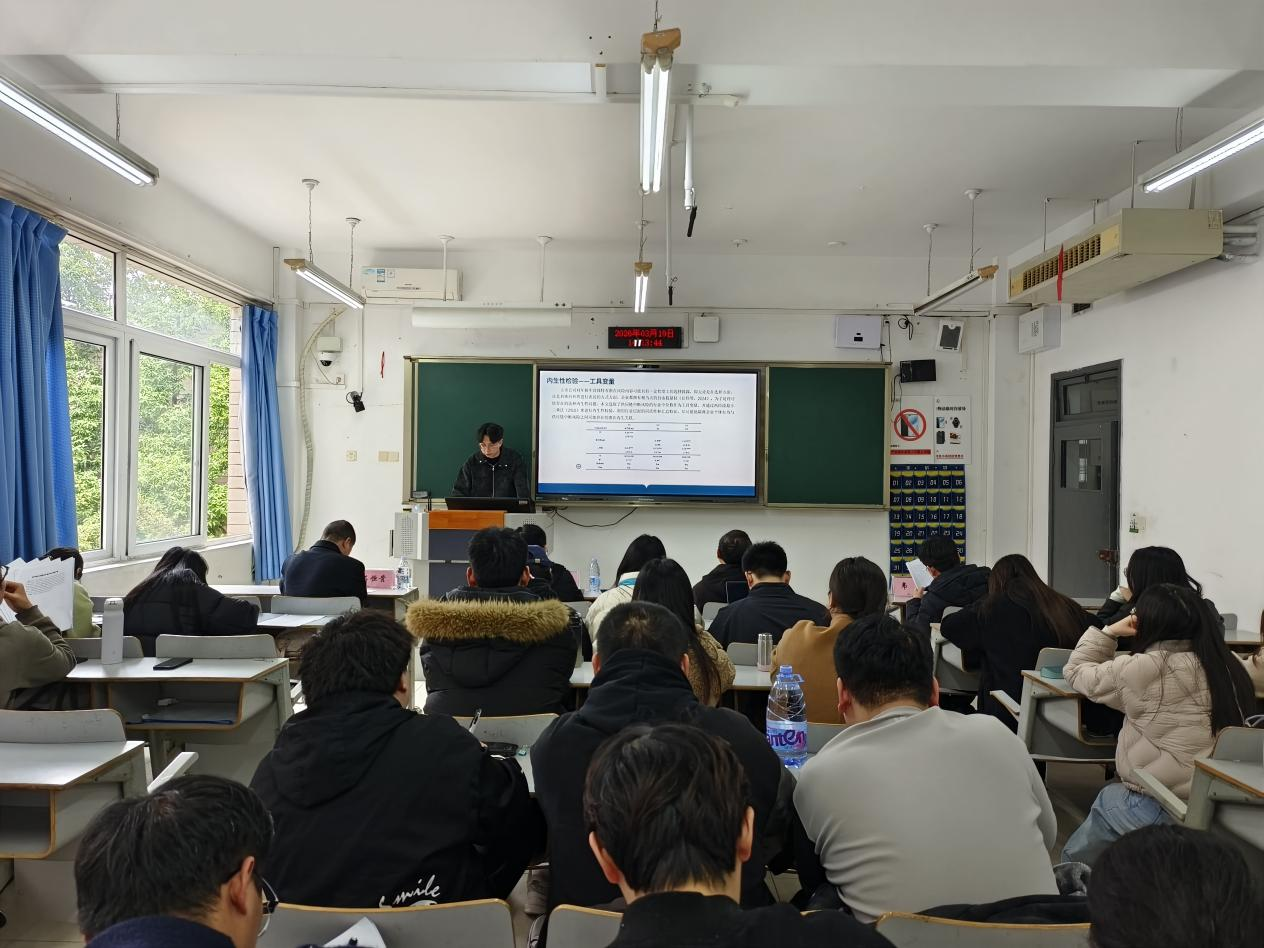 汇报环节后,黄辉教授、蒋水全教授、石恒贵教授、田冠军教授、韦浪副教授等与会老师,逐一对汇报论文进行了全方位、深层次的点评指导。老师们既充分肯定了各篇论文的研究价值与亮点特色,也精准指出了研究设计、逻辑架构、实证分析、行文规范等方面存在的不足,针对论文优化修改、研究方法完善、投稿适配调整等研究生普遍关注的核心问题,给出了极具针对性与实操性的专业建议。师生现场展开了热烈深入的交流探讨,在场研究生踊跃提问、积极互动,现场学术氛围浓厚,成效显著。