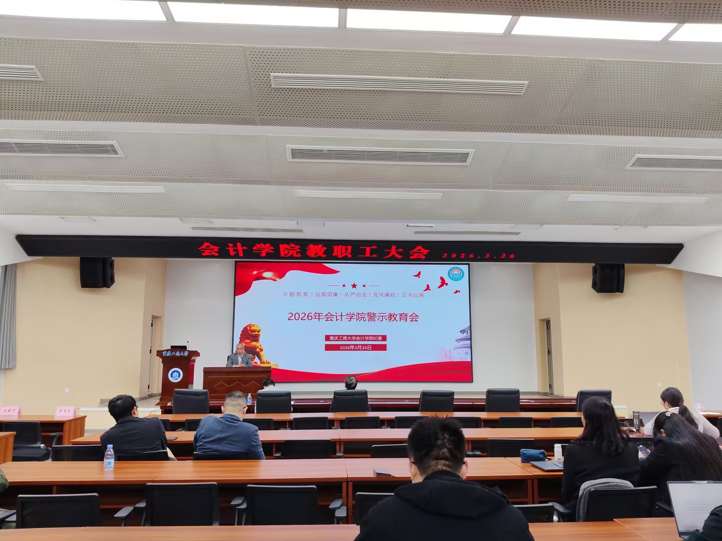3月26日下午,k1体育在明德楼1019报告厅举行警示教育会,会议由公司党委书记邓德敏主持,全院教师参会。