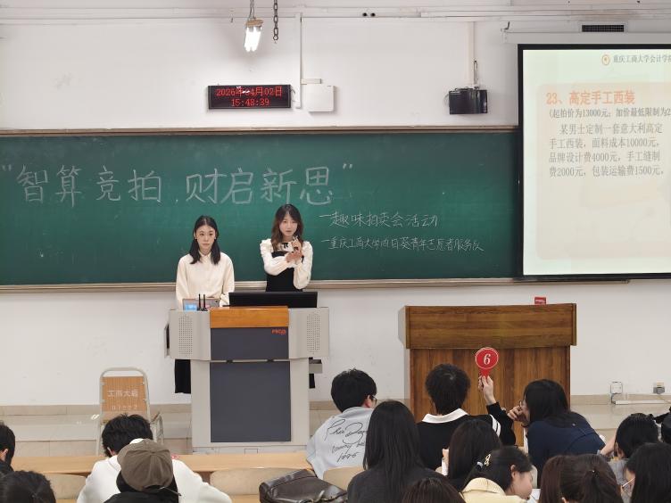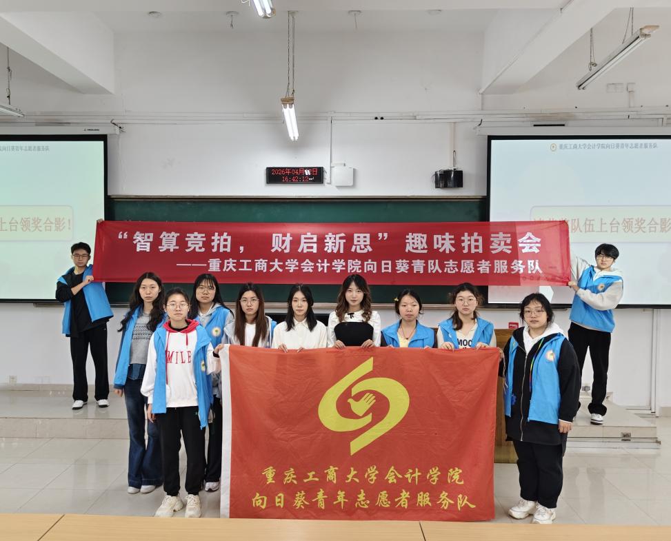 为破解财会专业理论学习枯燥难题,将资产评估、资金核算等核心专业知识与实践深度融合,提升学子实操与决策素养,2026年4月2日,k1体育向日葵青年志愿者服务队于南岸校区博智楼07222教室,成功举办“智算竞拍,财启新思”趣味拍卖会。全校60名同学组队参与,在趣味比拼中活用专业知识,尽显重工商学子风采。