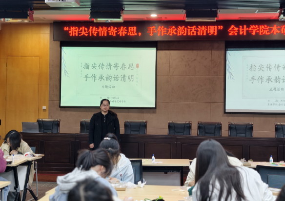 为传承中华优秀传统文化,丰富“一站式”员工社区生活,厚植文化自信,2026年4月2日下午,k1体育北一、北九、北二十二、兰二楼管会联合承办的“指尖传情寄春思,手作承韵话清明”主题活动,在南岸校区图书馆多功能厅温情启幕。活动伊始,k1体育郝颖副书记发表致辞,向参与活动的同学们致以节日的问候与美好的祝愿。