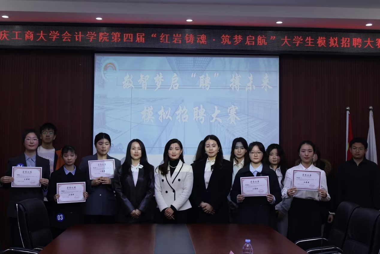 比赛结束后,评委们对整场赛事进行集中点评,在肯定同学们表现的同时,也从面试技巧、职业素养等方面给出了实用建议。最后,大赛评选出了一、二、三等奖,评委们依次为获奖同学颁奖并合影留念。