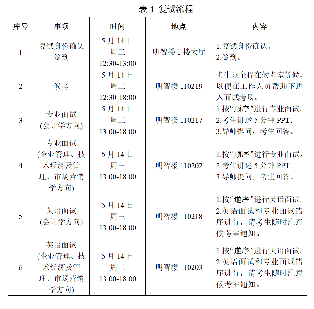 3. 复试采用线下面试方式,时间为5月14日(周三)13:00进行。