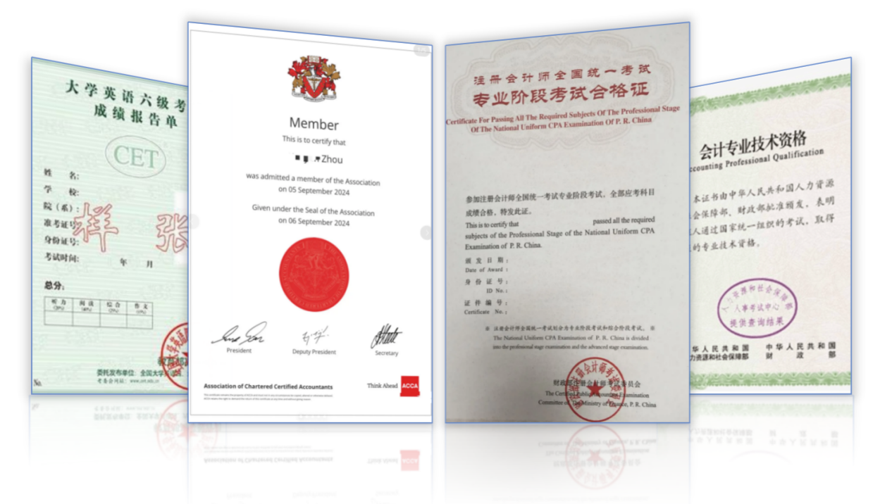 ① 八大会计师事务所官方盖章实习证明