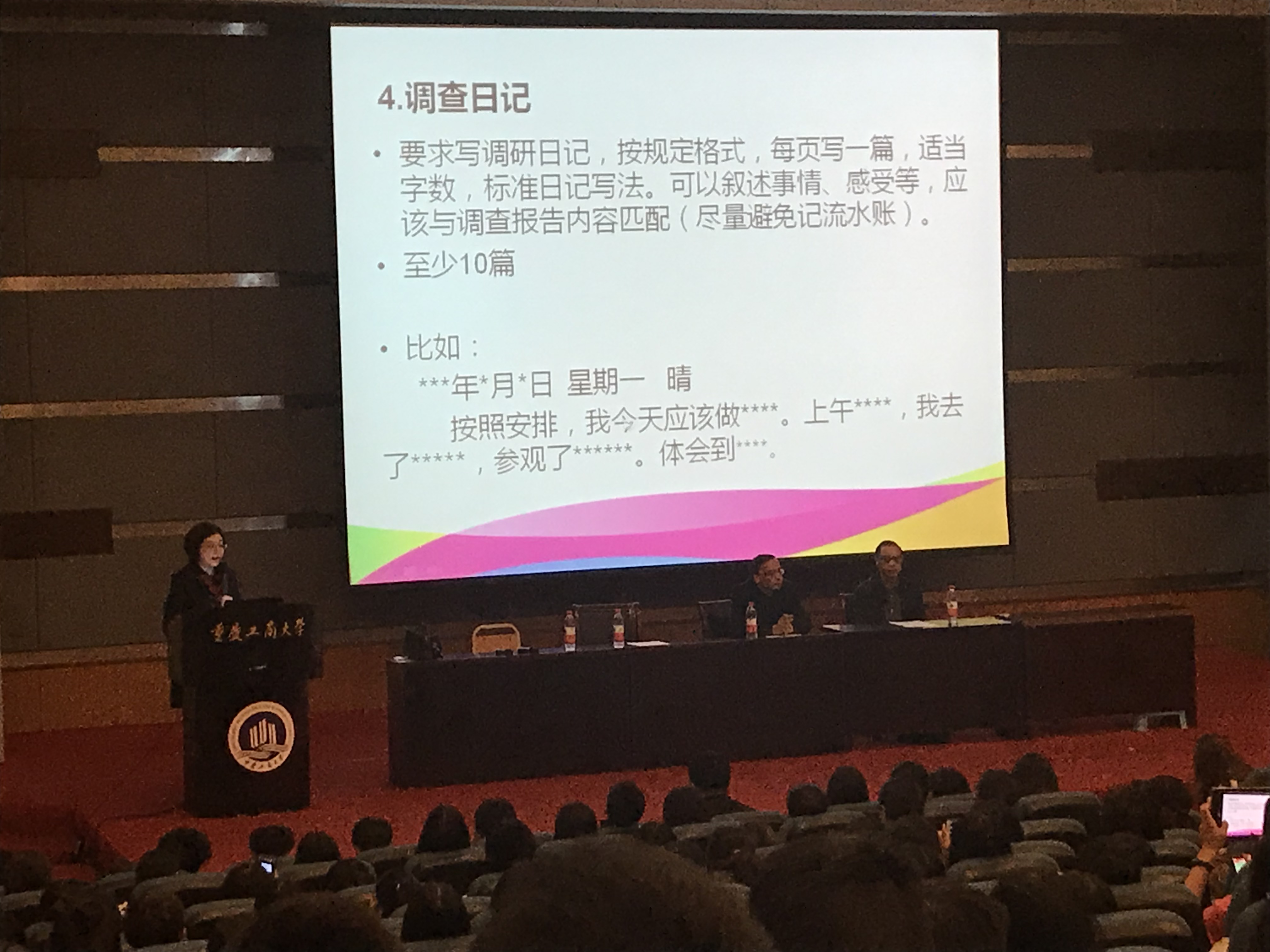 大会伊始,首先由黄经理讲述了专业调查的重要性和必要性,让同学们明白学院的用心良苦。紧接着,尹书记为同学们强调了专业调查过程中的安全事宜,希望同学们在保证安全的前提下顺利完成此次专业调查。随后,杜迎新和李长艳两位分别就专业调查报告的写作以及格式规范要求进行了详细的说明。
