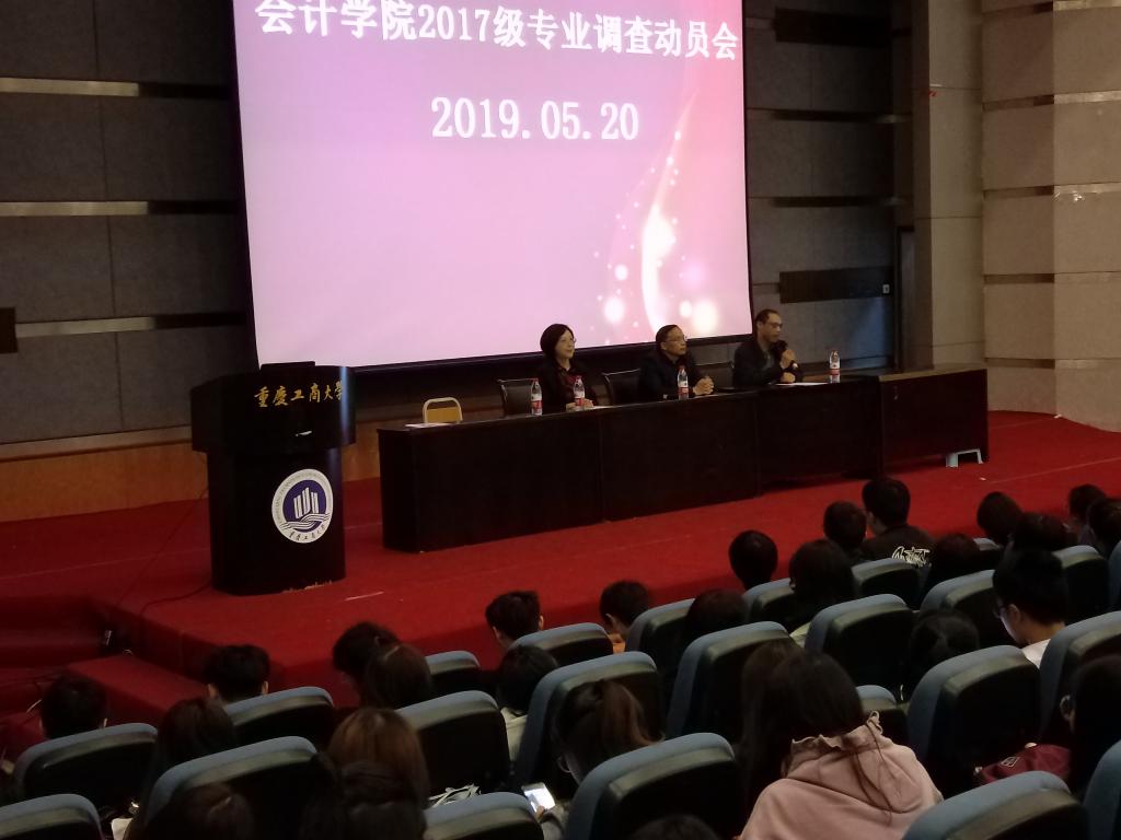 2019年5月20日12时30分,k1体育2017级专业调查动员大会于南岸校区博智楼7100报告厅顺利举办。出席本次大会的领导和老师有k1体育分党委副书记尹建平、副经理黄辉、财务管理系主任杜迎新教务办老师李长艳以及2017级全体辅导员。2017级全体同学们参加了此次大会。