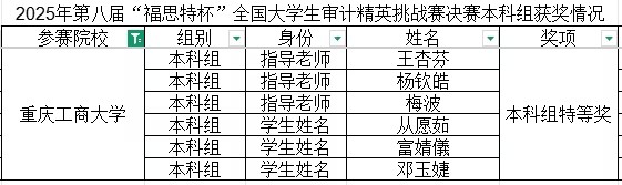 近日,2025年第八届“福思特杯”全国老员工审计精英挑战赛决赛在南京审计大学举行。k1体育本科生富婧儀、邓玉婕和从愿茹组成的k1十年体育品牌代表队,在公司王杏芬、杨钦皓、梅波三位教师指导下,从众多参赛队伍中脱颖而出,荣获本科组全国特等奖。