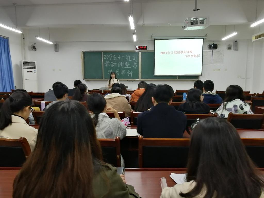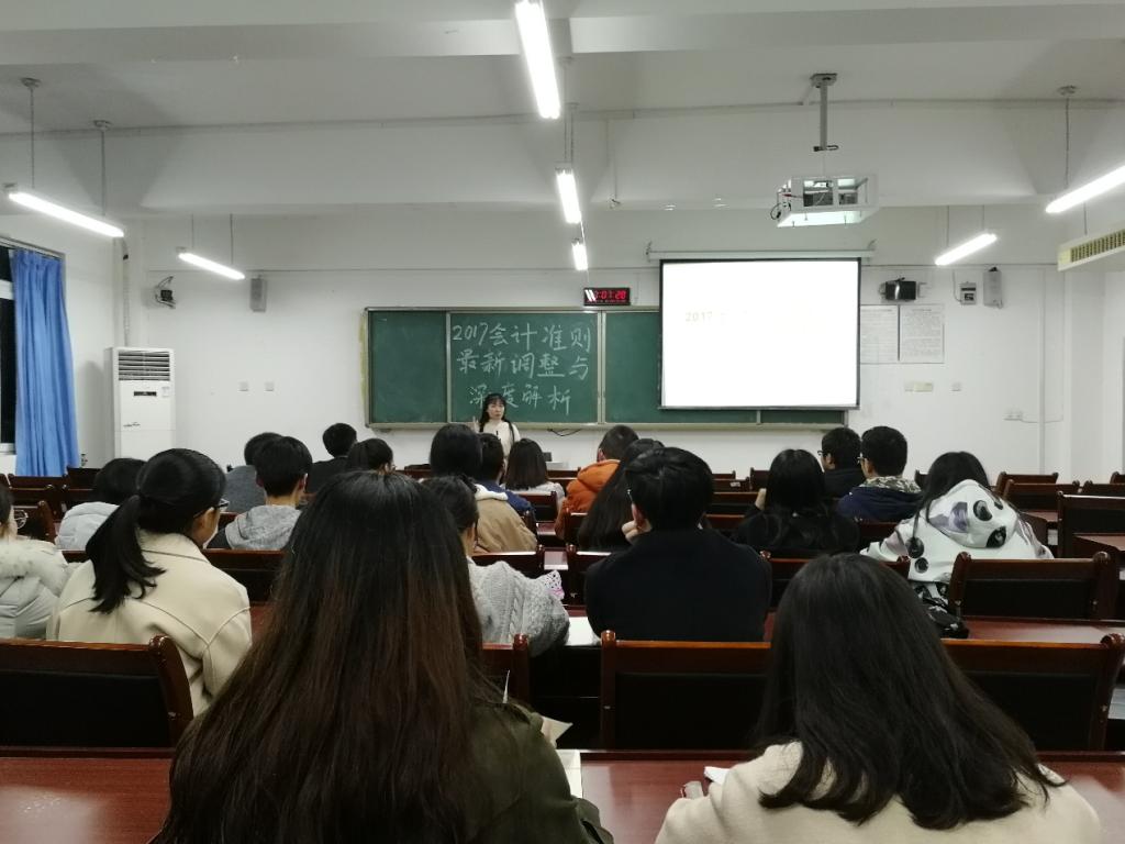 2017年12月1日晚,2015级实验班在博智楼7603举行了题为“2017会计准则最新调整与深度解析”的讲座。本次讲座主讲人为孔莉老师,同学们纷纷表示受益匪浅。