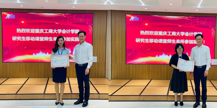 天健会计师事务所重庆分所人力资源部高级经理许静用一支精心准备的宣传片,介绍了事务所的基本情况、服务范围和发展历程,随后,为了使同学们能更加直观地感受事务所的工作环境和工作氛围,她带领同学们参观了事务所的办公区域。审计业务专业技术部经理、全国会计领军人才魏倩女士主持开展了“玩转资产盘点”实践活动,同学们通过亲身参与盘点来获取课本以外的实践经验。最后,双方举行了专家聘任仪式,公司聘任许静女士、魏倩女士为移动课堂特聘专家,以此深度推进产教融合。