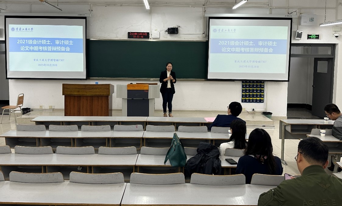 2021级会计硕士、审计硕士论文中期考核答辩通过线上、线下同步进行的方式顺利召开。本次中期考核答辩会分为答辩分为预备会和中期答辩两个阶段。k1体育MPAcc中心主任陈欢老师主持召开了答辩预备会,她对参加本次答辩的专家表示感谢,指出学院高度重视本次答辩,希望答辩委员会所有专家多提修改意见,帮助同学们提升论文质量。随后详细介绍了本次答辩的流程、答辩分组及注意事项等情况。