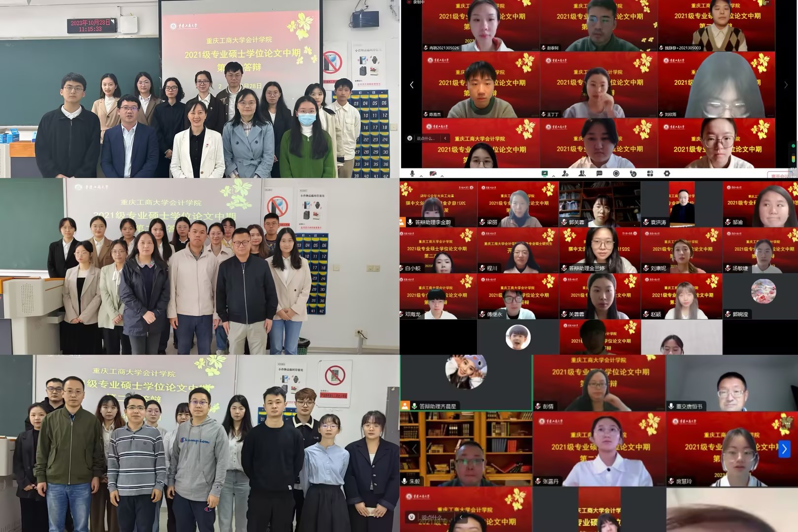 线上中期答辩会邀请到重庆理工大学杨宝教授、重庆交通大学唐恒书教授、重庆交通大学梁丽教授担任校外学术专家,线下中期答辩会邀请到西南政法大学吴先聪教授、重庆大学张金若教授、重庆理工大学王海兵教授担任校外学术专家。线上答辩与线下答辩各3组,每一组的答辩专家分别由一位校外学术专家、一位事业导师、一位校内学术导师组成,为同学们的论文进行答辩指导。