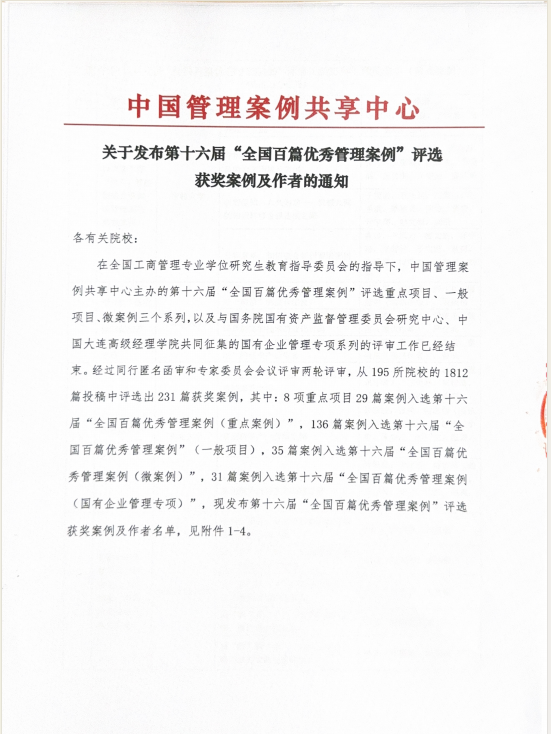 近日,在中国管理案例共享中心主办、全国工商管理专业学位研究生教育指导委员会指导的第十六届“全国百篇优秀管理案例”评选活动中,公司k1体育再创佳绩,由刘胜强教授团队和韦浪博士团队撰写的三篇管理案例成功入选,获奖总数位居重庆市高校首位。其中,两篇入选“一般项目”,一篇入选“国有企业管理专项”。