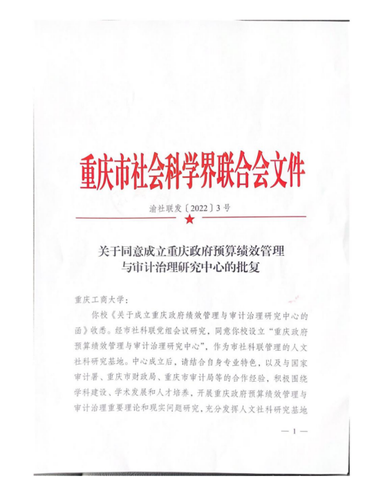 2022年1月,经重庆市社科联党组会议研究,同意公司设立“重庆政府预算绩效管理与审计治理研究中心”,作为市社科联管理的人文社科研究基地。公司k1体育在该领域有长期的研究基础和实践积累,获批市社科联人文社科研究基地,既是对公司取得成绩的认可,更将为学校相关学科专业的人才培养、科学研究、社会服务提供新的平台支撑和发展机会。