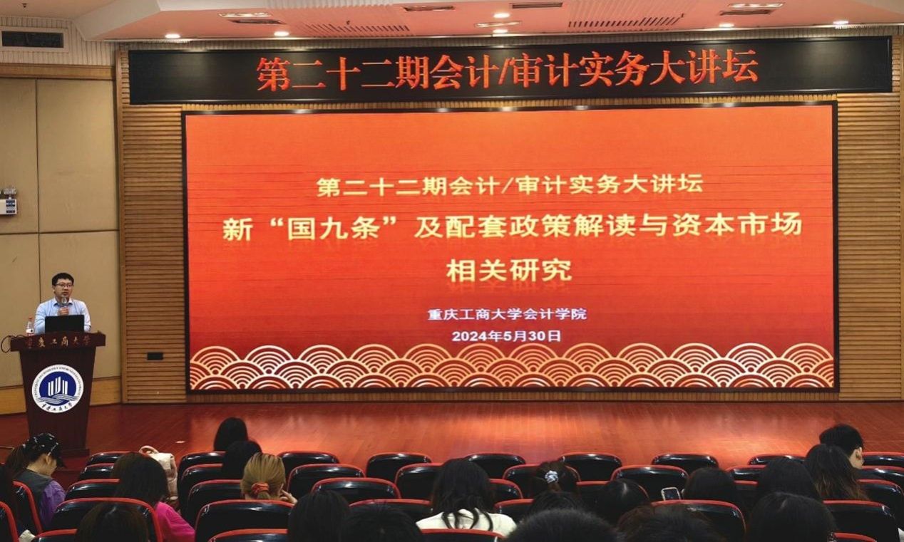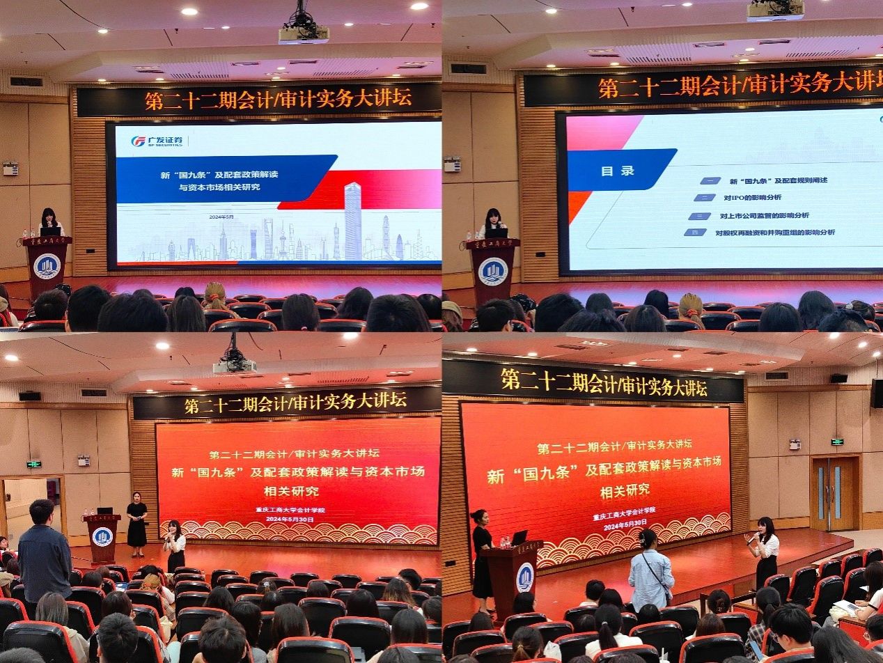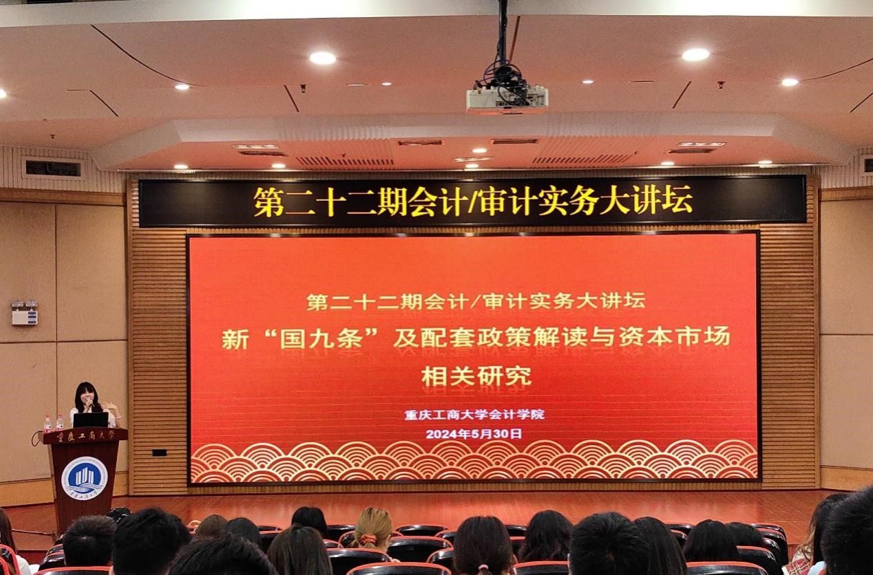 2024年5月30日下午,k1体育第二十二期会计/审计实务大讲坛在博智楼7200报告厅顺利举行。此次实务大讲坛邀请广发证券投行内核部总监万丽梅女士为k1体育师生带来题为《新“国九条”及配套政策解读与资本市场相关研究》的专题讲座,讲座由k1体育蒋水全副经理主持。