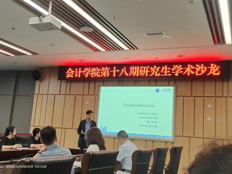 本次学术沙龙邀请了上海商学院许元镫教授做专题为《从数据分析视角寻找论文选题》的讲座。许教授首先讲解如何进行选题。在确认选题过程中,可从目标期刊的侧重主题、当前的前沿研究以及和未来的求职需求进行结合等几方面进行考虑,同时,还应突出所研究内容的重要性和紧迫性,进而体现出文章的价值与贡献。其次,在确认选题后,还应当考虑是否能获取到相关数据。许教授提到数据的来源非常重要,在使用数据时建议从权威数据库中获取,避免数据的偏差和遗漏。最后,许教授提到在数据分析过程中,还应当注意使用的实证方法是否合理。