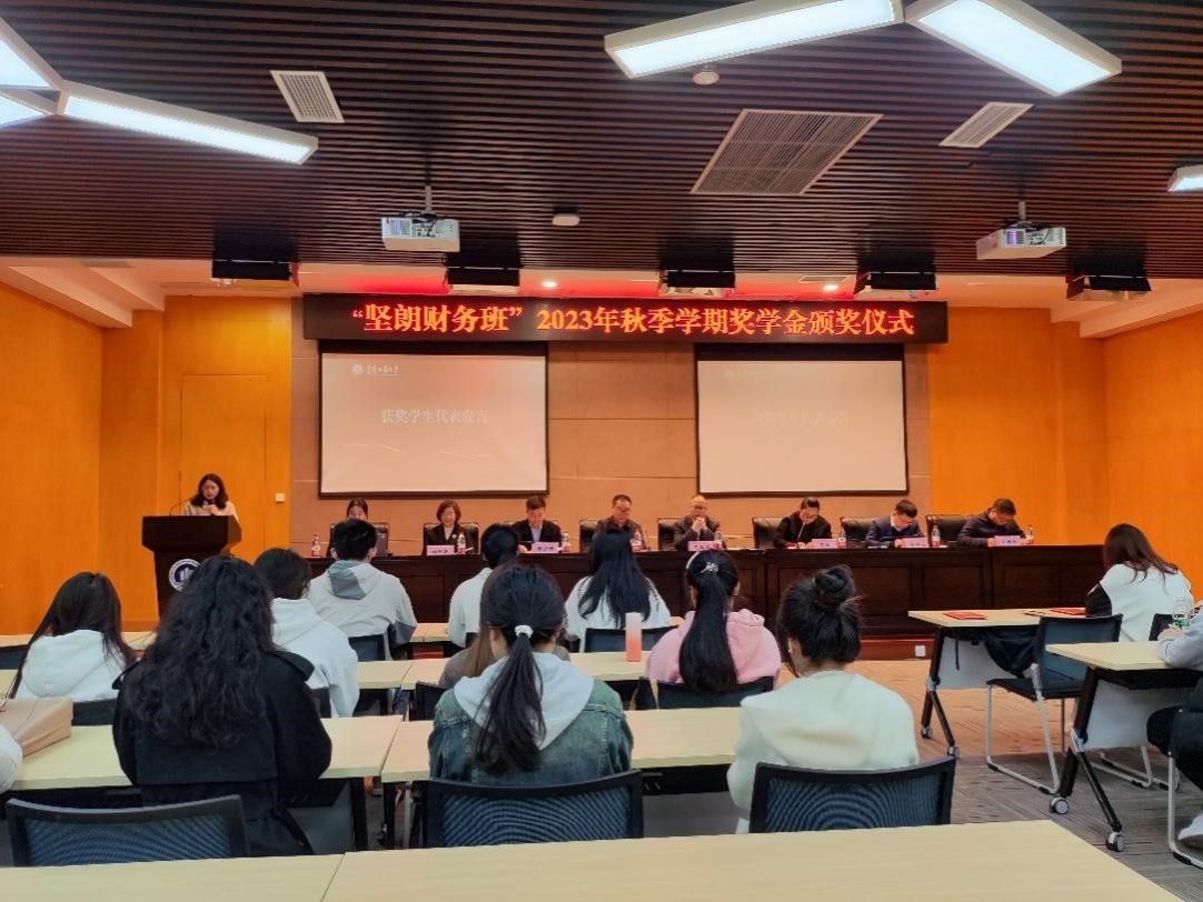 3月15日,广东坚朗五金制品股份有限公司在公司校企合作项目“坚朗财务班”设立的奖学金颁奖仪式在南岸校区会议中心多功能厅室隆重举行。广东坚朗五金制品股份有限公司大重庆销售区块副总经理尚志强、广东坚朗五金制品股份有限公司人力资源中心培训发展部讲师邓芳坤,公司党委书记邓德敏、党委副书记郝颖、副经理蒋水全、财务系主任王世杰、合作与交流中心主任杜迎新与“坚朗财务班”同学一起出席了颁奖仪式。