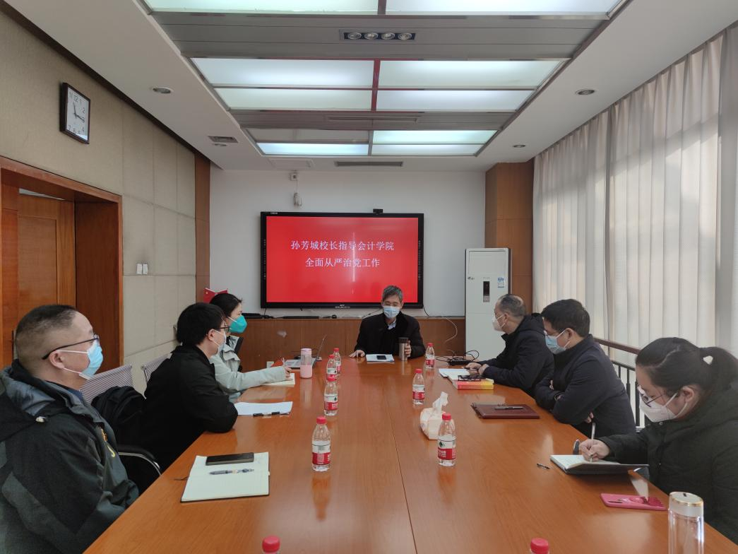 接着,孙芳城对学院全面从严治党工作进行指导,他强调,一是要提高站位,围绕党的二十大报告中关于全面从严治党的要求,全面加强党的领导,切实履行主体责任,立足学院实际,以习近平新时代中国特色社会主义思想为指导,坚定不移推进公司党风廉政建设;二是要以生为本,聚焦立德树人根本任务,加强师生思想政治引领,凝聚师生力量,形成学院发展的合力和共识;三是要廉洁自律,始终把政治纪律和政治规矩挺在前面,加强自身党性修养,牢固树立底线思维,做好身边事、管好身边人。