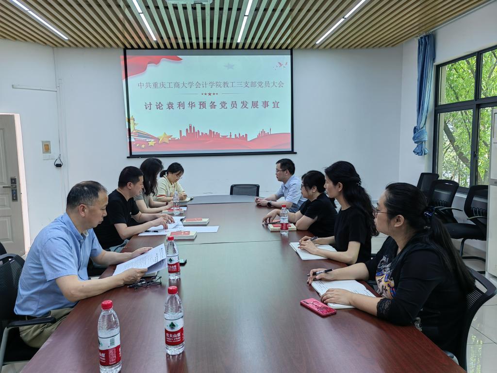 与会党员对袁利华同志的发展情况进行了充分讨论和发表意见,经与会正式党员的无记名投票,一致同意接收袁利华同志为中国共产党预备党员。党支部书记石恒贵同志代表党支部宣读支部大会决议,袁利华同志做了表态发言。