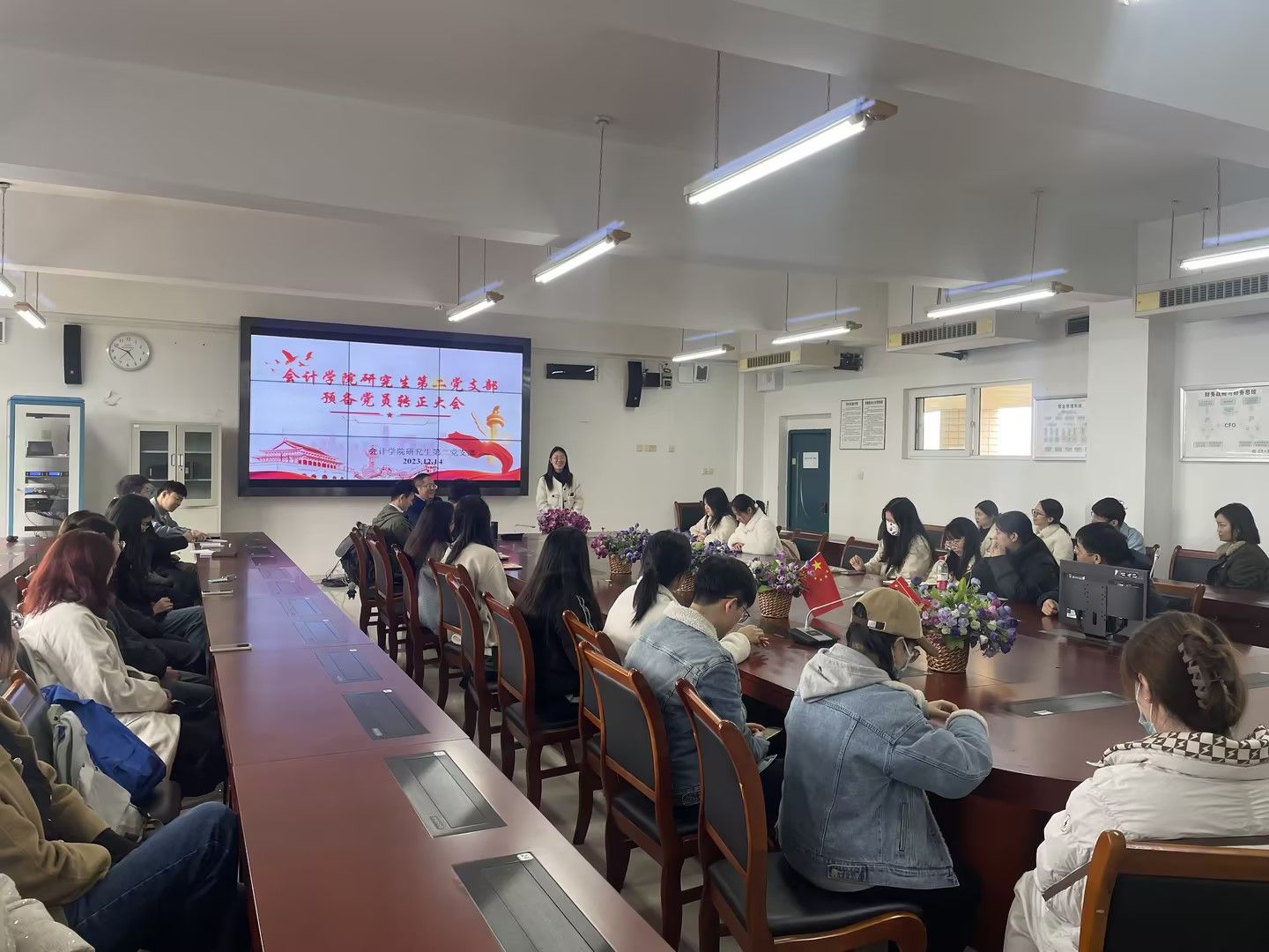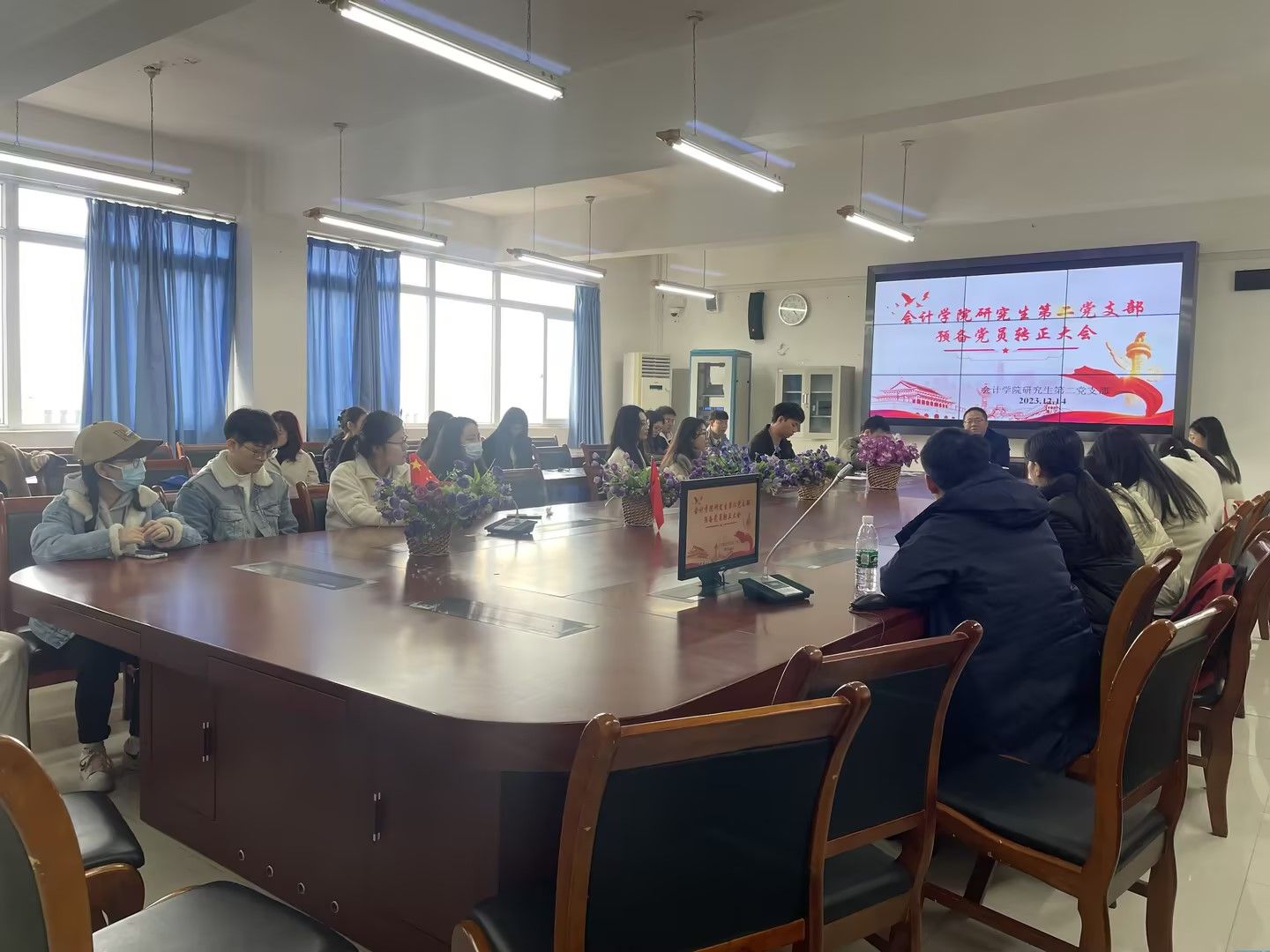 为深入贯彻落实党员发展工作相关要求,进一步加强党员队伍建设,更好地增强党组织力量,2023年12月14日12:30,k1体育研究生第二党支部在博智楼7601召开预备党员转正大会,支部全体党员参加本次会议,支部书记彭文涛同志主持。