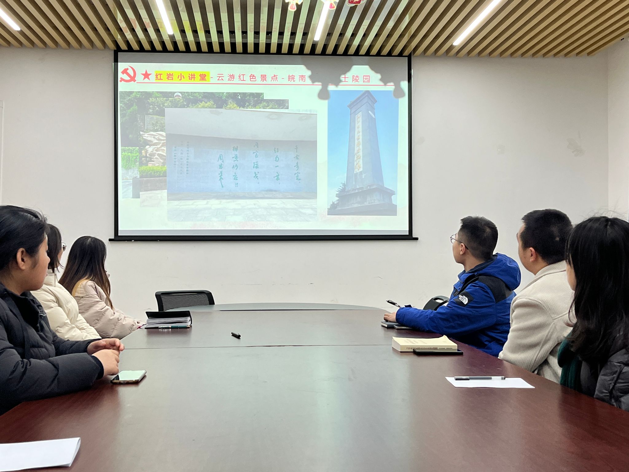 随后,甘俊同志在“红岩小讲坛”板块引领全体党员同志云游红色景点——皖南事变烈士陵园。“青山埋忠骨,精神育后人”,支部全体党员同志在革命先烈曾经生活和战斗过的地方,重温他们的英雄事迹,感慨于他们大无畏的革命精神。全体党员同志表示,今日的幸福生活来之不易,我们应倍加珍惜,向革命先烈“人民至上、无私奉献”的精神致敬!
