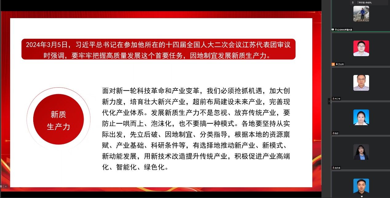 组织生活集中学习阶段,任成林同志领学了习近平总书记在全国“两会”期间的重要讲话和2024年国务院《政府工作报告》,对政府工作报告进行解读。任成林领学中指出:习近平总书记在全国“两会”期间的重要讲话对高质量发展和中国式现代化建设的许多重大问题作了深刻阐述,具有很强的思想性、指导性、针对性。提出广大党员应该自觉将学习贯彻习近平总书记重要讲话精神同贯彻落实党的二十大精神结合起来,自觉将教师主业和党的决策部署结合起来,做好时代担当。
