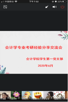 为进一步发挥榜样力量,营造优良学风,提高2017级会计学专业考研同学们的备考效率,2020年6月10日,k1体育员工第一党支部通过企业微信线上视频会议举办了会计学专业考研经验分享交流会。本次会议由k1体育员工第一党支部书记罗海蓉老师主持,邀请了2016级会计学专业考研成功的员工党员张翠、赵慧、谭晨、李娇、蒋雪佳、龚春萌以及刘珍宏同学进行了考研经验的分享交流。