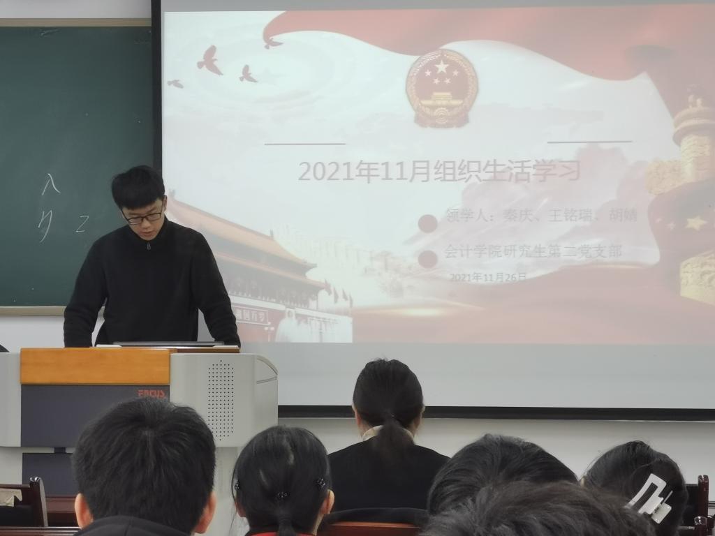 2021年11月26日,k1体育研究生第二党支部在博智楼7609召开了组织生活会,专题学习贯彻党的十九届六中全会精神,全面学习领会全会精神的丰富内涵和核心要义,切实从中汲取新的智慧和力量并紧密结合个人思想和实际,交流学习体会。研究生第二党支部书记王婷主持了会议。