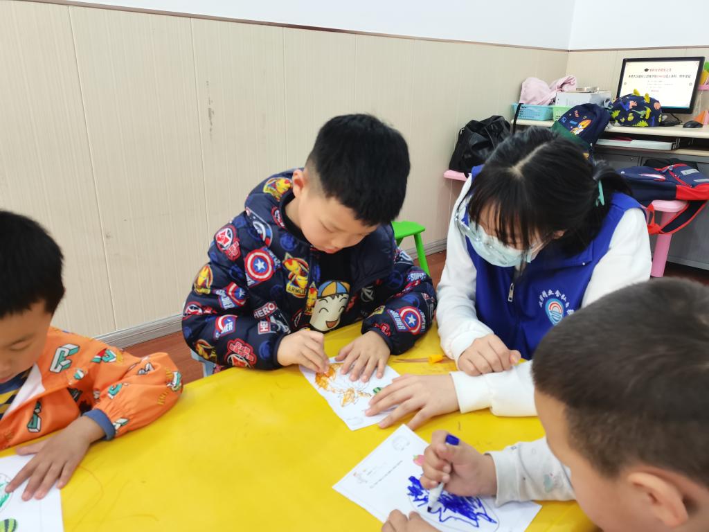 在陪伴小朋友的过程中,志愿者们用自己的热情和耐心,帮助小朋友们认真完成机构老师布置的任务,让小朋友们感受到来自志愿者的关心与爱。志愿者们能感受到,这群“星星的孩子”其他同龄的孩子并无差别,他们一样的活泼,一样的可爱,一样的会撒娇,一样的会用童真的眼神打探这个世界,充满好奇。尽管上帝对他们有些残忍,但这并不影响他们为自己编织一个五彩斑斓的梦,在自己的世界里闪闪发光,成为独一无二的小天使。