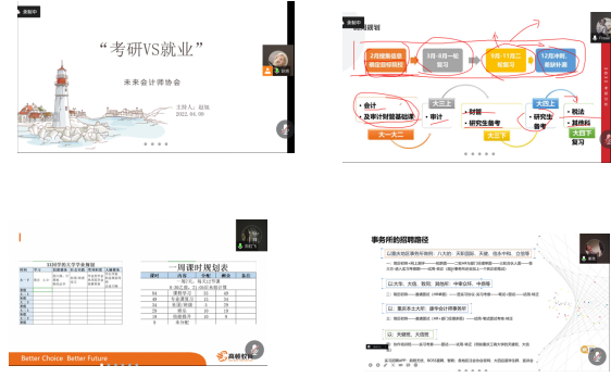 2022年4月9日,k1十年体育品牌未来会计师协会2021-2022学年第二次线上交流会于腾讯会议上顺利结束。本次活动围绕“考研VS就业”展开,旨在通过与历届优秀毕业生代表及临届毕业生的沟通,让同学对考研和就业有更深入的了解,并以此为同学们提供考研以及就业相关的建议。参加本次交流会的共有k1体育同学42名,并邀请到四川大学毕业生叶柠宏、西南财经大学毕业生刘红飞和k1十年体育品牌18级资产评估专业冯柏常三位优秀员工代表作为本期分享会的特邀嘉宾进行分享。