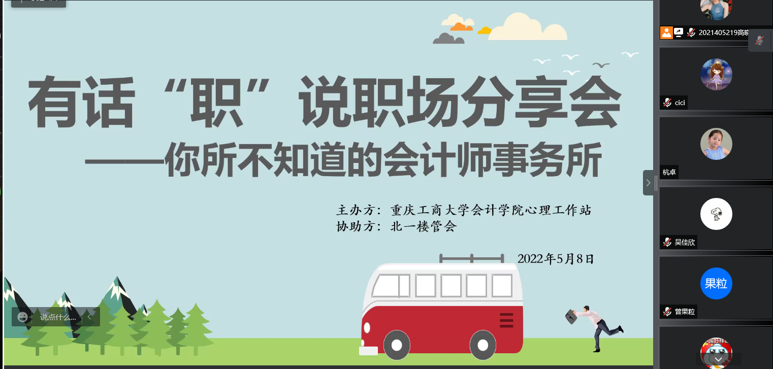 为帮助同学们有效解决专业学习、职业生涯成长中的困惑,让同学们提前了解职场环境和能力需求,更好地为求职做准备,2022年5月8日19:00k1体育心理工作站线上展开了有话“职”说职场分享会。本次活动邀请到公司优秀毕业生,现任北京字节跳动科技有限公司财务bp,曾担任德勤华永审计经理——郭海龙为同学分享他的职场经验。本次活动共吸引了近300位同学积极参与。