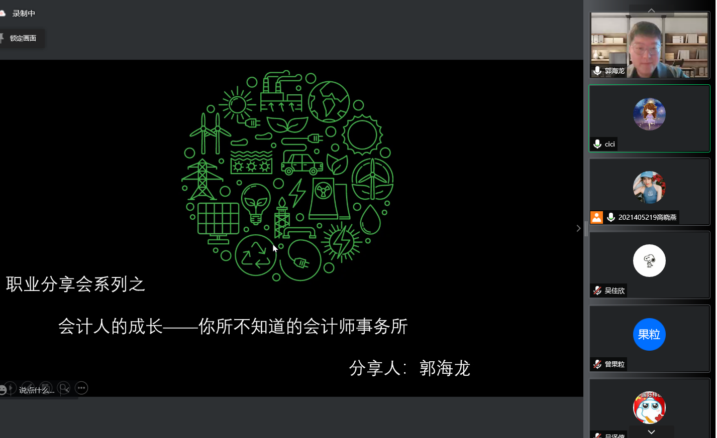 活动伊始,陈曦老师简单介绍了郭海龙学长的工作经历,并对学长的到来和同学们的参与表示欢迎和感谢。接着,郭海龙分别从事务所工作日常、行业发展窥探、职业发展观察、能力模型与应聘考证四大方面详细的向同学们呈现了在事务所工作的点点滴滴。通过他分享,同学们对事务所审计的工作内容、工作环境、晋升途径、薪资待遇等各方面的内容都有了一个较为全面的了解,也对会计审计这个行业未来的发展趋势有了更清晰的认识。此外,学长还向同学们详细介绍了四大会计师事务所的面试流程,为同学们介绍了非常实用的面试经验。他也建议同学们在学好专业课的基础之上,多为自己的能力“加成”:比如英语六级、计算机编程、实习经验、cpa证书等。