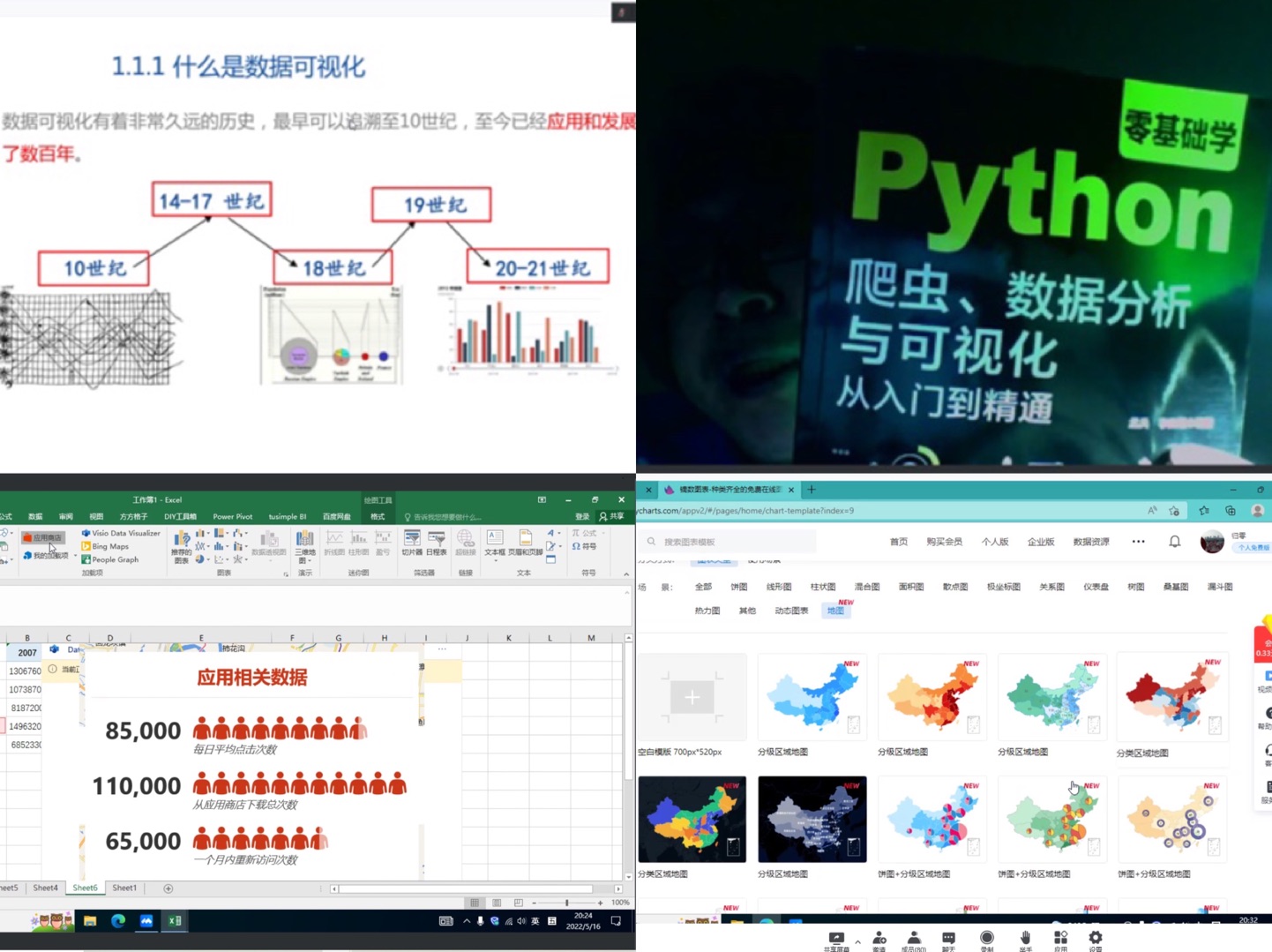 会议期间,赵青华老师主要介绍数据可视化的概念定义、使用工具以及操作方法等方面。首先,赵青华老师从数据可视化的概念出发,介绍数据可视化的四大方向,并讲解构建数据模型的基本方法。随后,老师向同学推荐了Python和Power BI等数据处理工具以及学习数据可视化处理的书目《Python—爬虫、数据分析与可视化》。最后,老师通过屏幕演示,通过Excel软件亲自向同学展示如何进行简单的数据可视化模型的构建和操作。