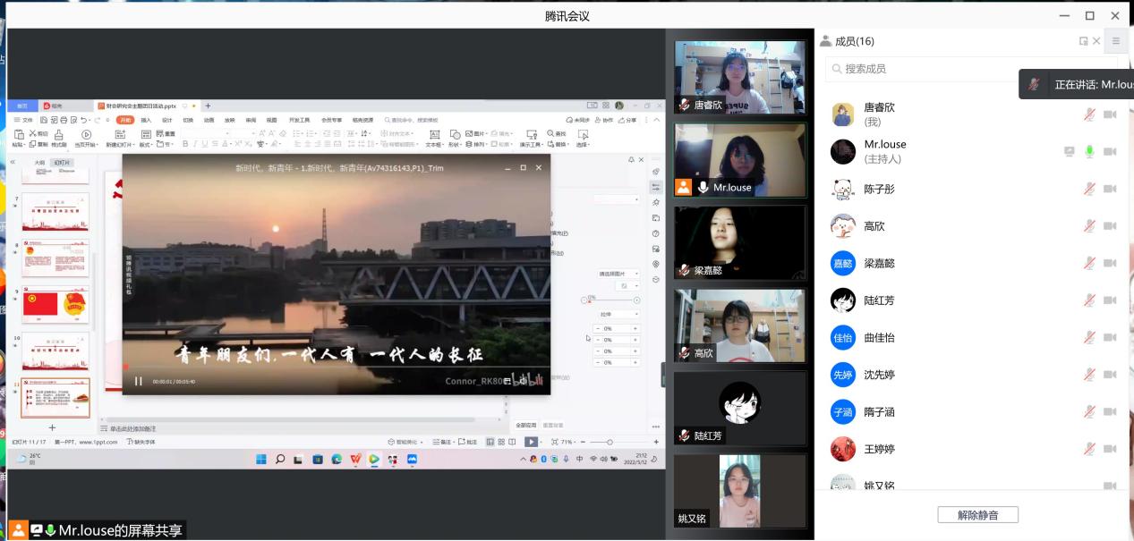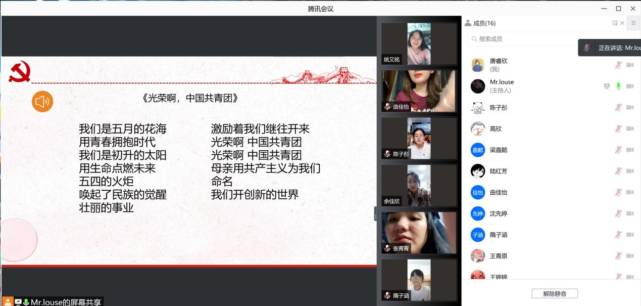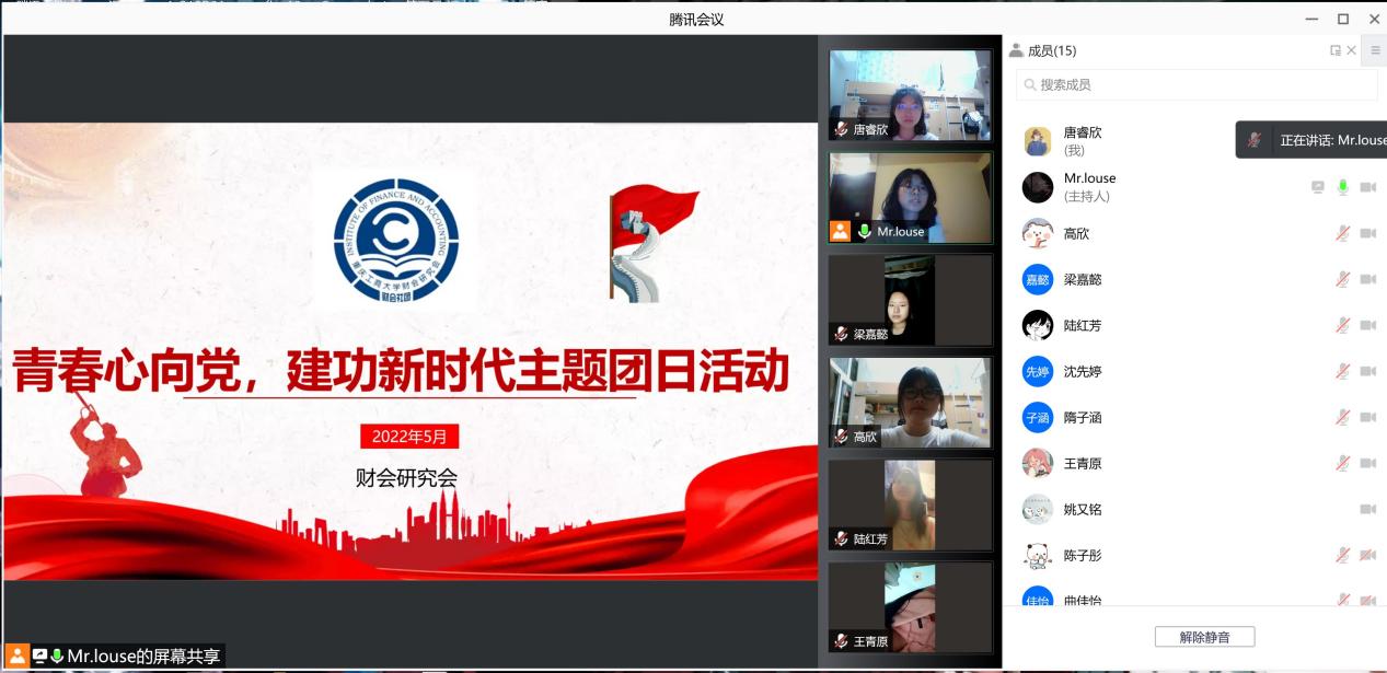 为纪念中国共产主义青年团成立一百周年、深入贯彻落实习近平总书记在党的一百周年大会上关于新时代青年新的时代任务和使命,k1十年体育品牌财会研究会于5月12日举办了社团团日活动。为了落实防控疫情的要求,本次团日活动通过腾讯会议线上开展。