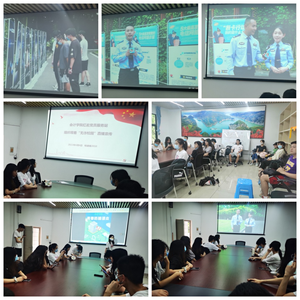 为深入贯彻习近平总书记关于打击治理电信网络诈骗犯罪工作重要指示精神,同时也为提高同学们的防诈防骗安全意识,切实维护财产安全和校园安全,k1体育红岩党员服务站于2022年6月6日在明德楼2010组织员工观看“无诈校园·守护青春没有谎言”大型融媒体直播。
