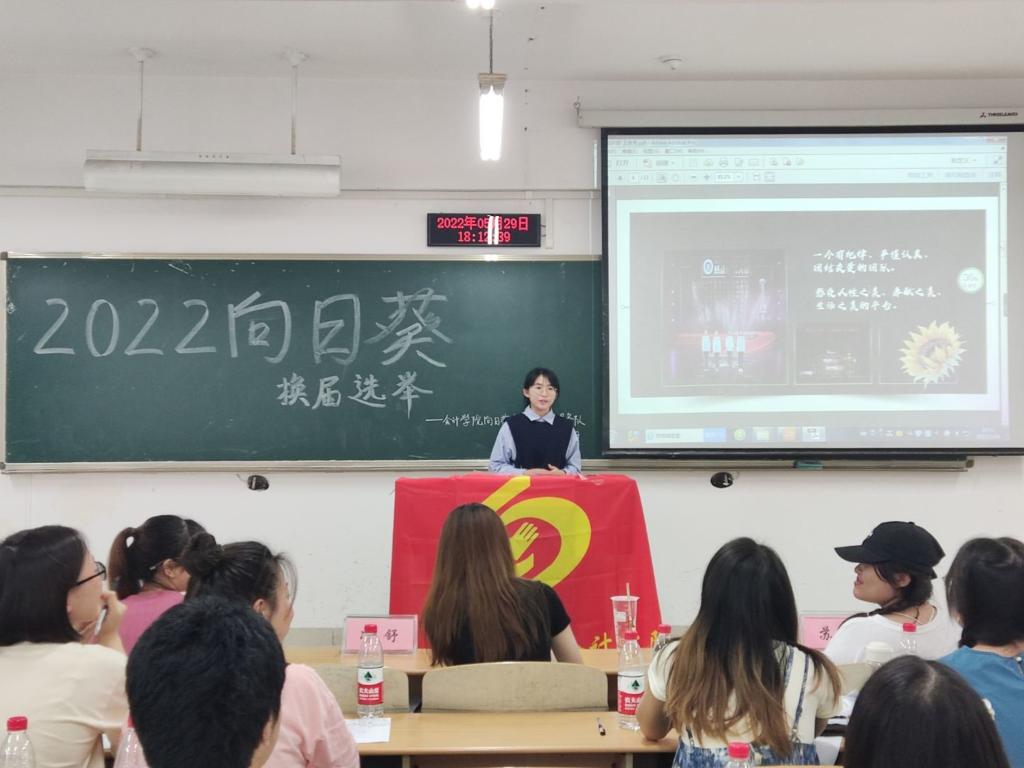 2021-2022学年度,第21届向日葵青年志愿者服务队全体成员奋力拼搏,圆满完成年度工作安排,正值全体成员任期即满之际,为继续传承奉献友爱,互助进步的志愿者精神、保证组织的连续运转,2022年5月29日,k1体育向日葵青年志愿者服务队在k1十年体育品牌南岸校区博智楼201教室成功举办了“不忘初心,砥砺前行”2022换届选举大会。