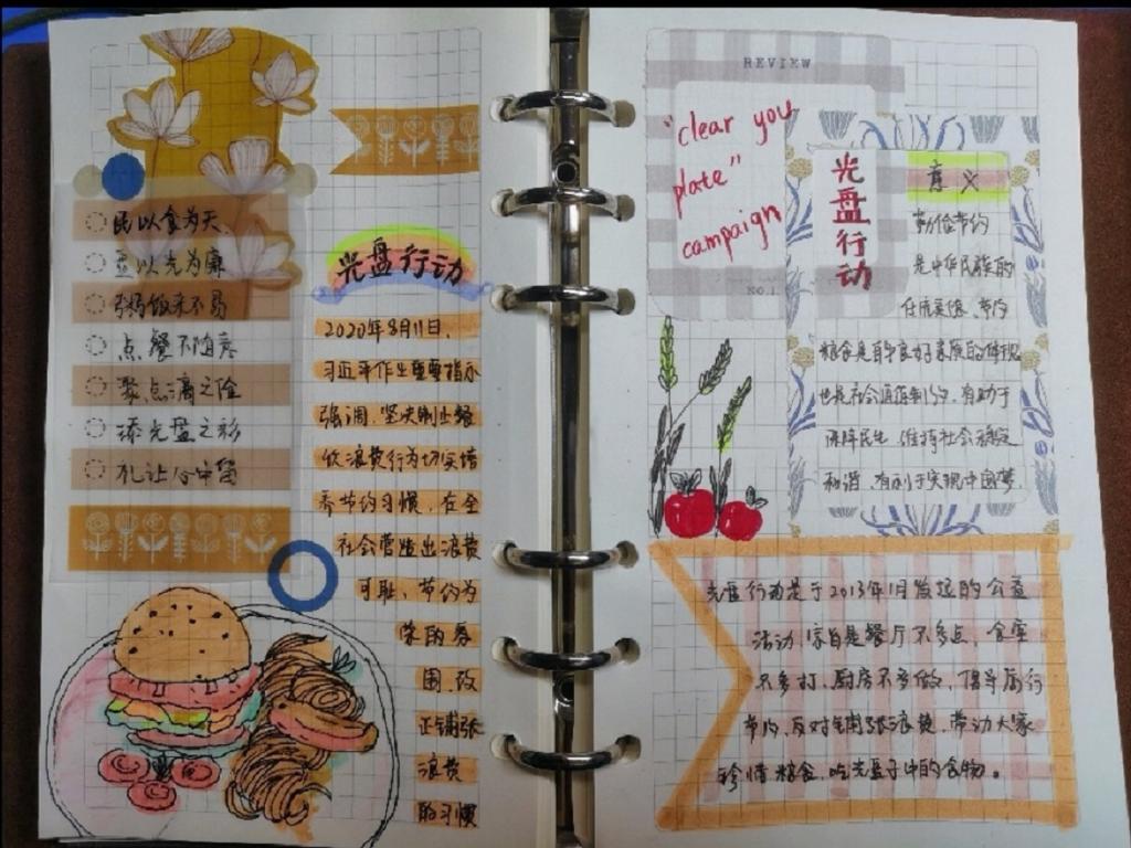 “一粥一饭,当思来之不易”,勤俭节约是中华民族的传统美德,我们需时刻牢记爱惜粮食的优良传统。本次光盘行动旨在遏制餐饮浪费的行为、改变铺张浪费的习惯,弘扬文明之风、传播节俭之种,在全校营造“勤俭节约为荣,铺张浪费为耻”的氛围。“聚点滴之俭,添光盘之彩”——线上光盘行动手账比赛要求参赛人员通过QQ邮箱提交手账作品,并鼓励参赛人员通过切身真实感受发挥创新思维创造出优秀作品。活动期间,同学们积极踊跃参与投稿,涌现出一大批优秀的手账作品,作品收集结束后,共征集175份作品,参赛人员与工作人员进行了公开透明的实名制投票,综合票数后共选出一等奖3名,二等奖7名和三等奖12名。