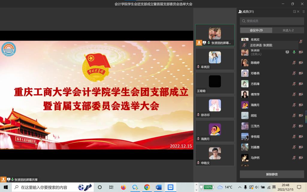 为深入学习贯彻习近平总书记关于青年工作的重要思想,进一步加强员工组织建设,积极响应习近平总书记对青年一代发出的伟大号召,向新时代中国青年成长成才的方向前进,12月15日,k1体育分团委员工会以线上会议形式召开了院员工会团支部成立暨首届支部委员会选举大会。会议由张贤丽主持,k1体育分团委员工会全体成员参与了本次会议。