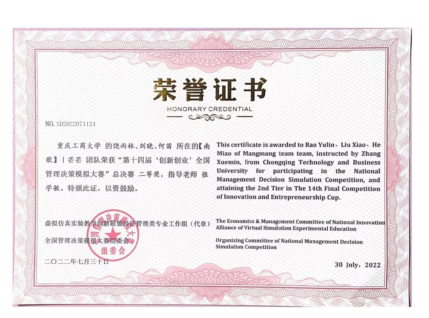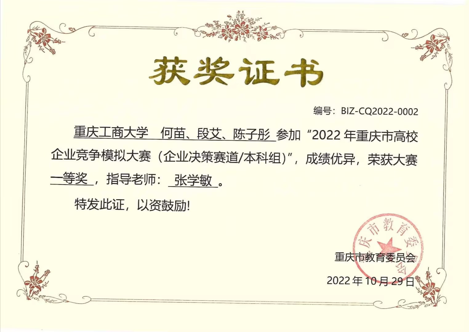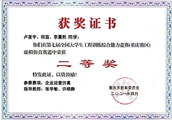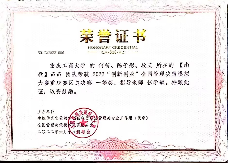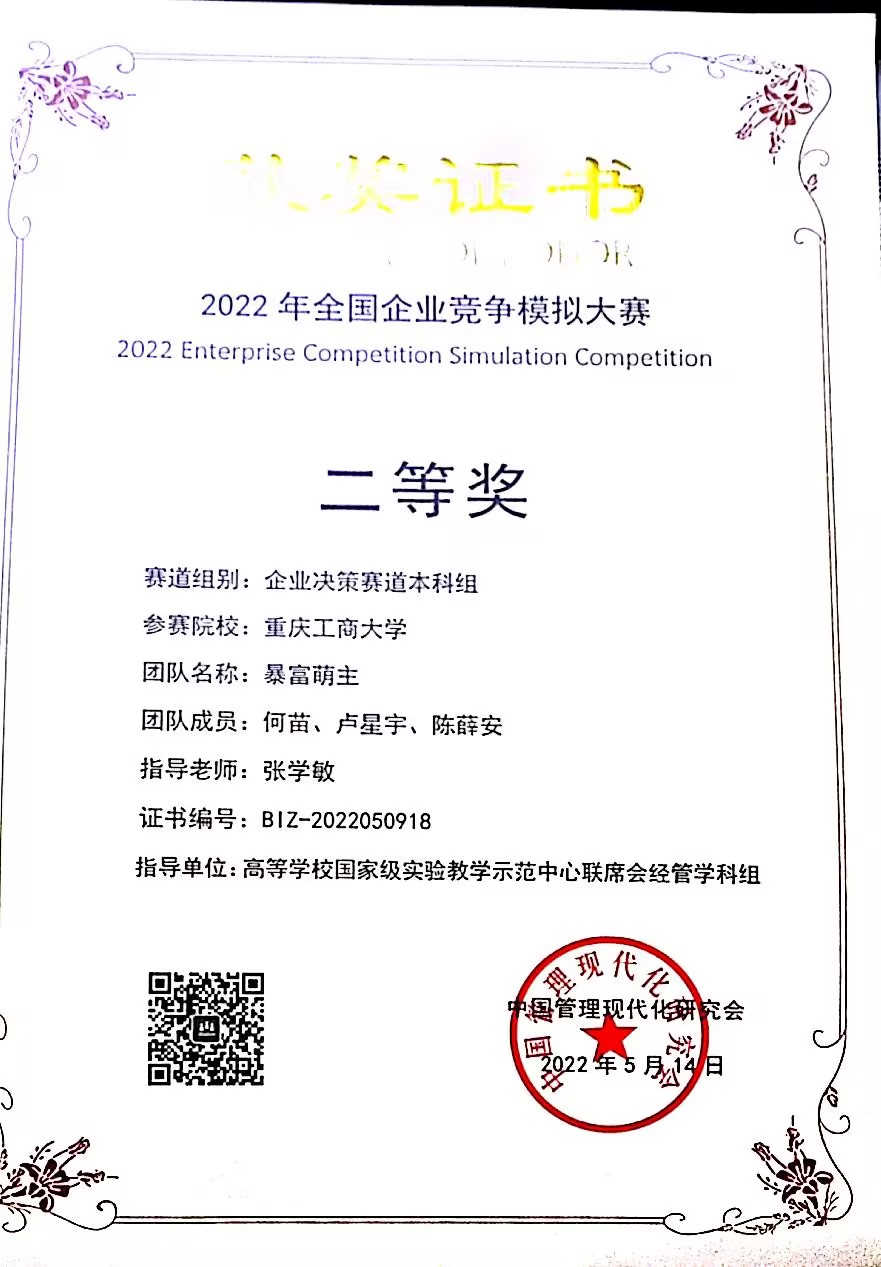 何苗,k1体育2020级财务管理一班员工,ERP员工俱乐部会长,平均学年绩点:4.1,荣获2022年会计之星—科创之星称号。入校以来,荣获国家奖学金、全国企业竞争模拟大赛二等奖、全国管理决策模拟大赛二等奖等7项国家级奖项;第九届海峡两岸老员工职业技能大赛一等奖、第七届全国老员工工程训练综合能力竞赛(重庆赛区)二等奖、全国老员工数学竞赛三等奖等8项省级奖项;综合一等奖学金、优秀员工等20余项校级奖项以及征文比赛二等奖等院级奖项。