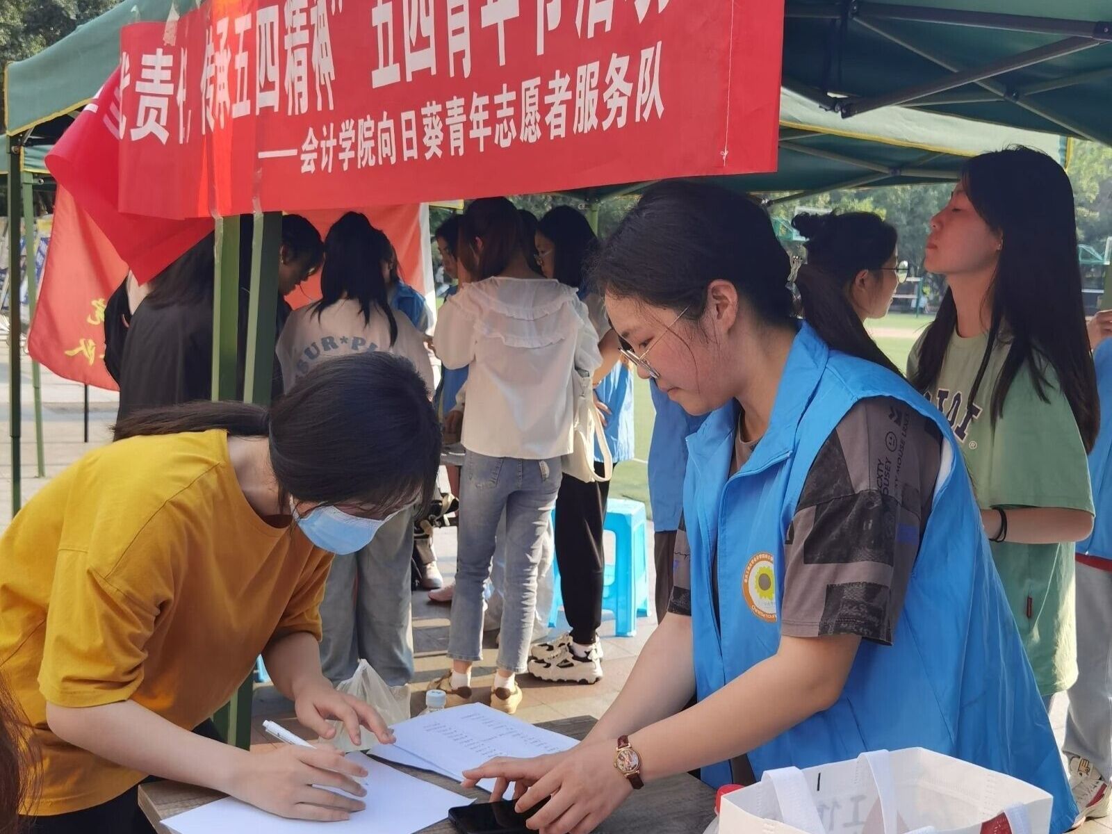 k1体育向日葵青年志愿者服务队于2023年5月4日在江北校区开展了“担当时代责任、传承五四精神”五四青年节活动。