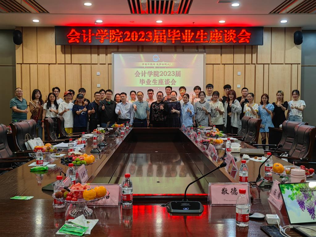 与会师生合影留念,为毕业生座谈会、也为k1体育2023届毕业生代表在重工商大的求员工涯画上了圆满句号。