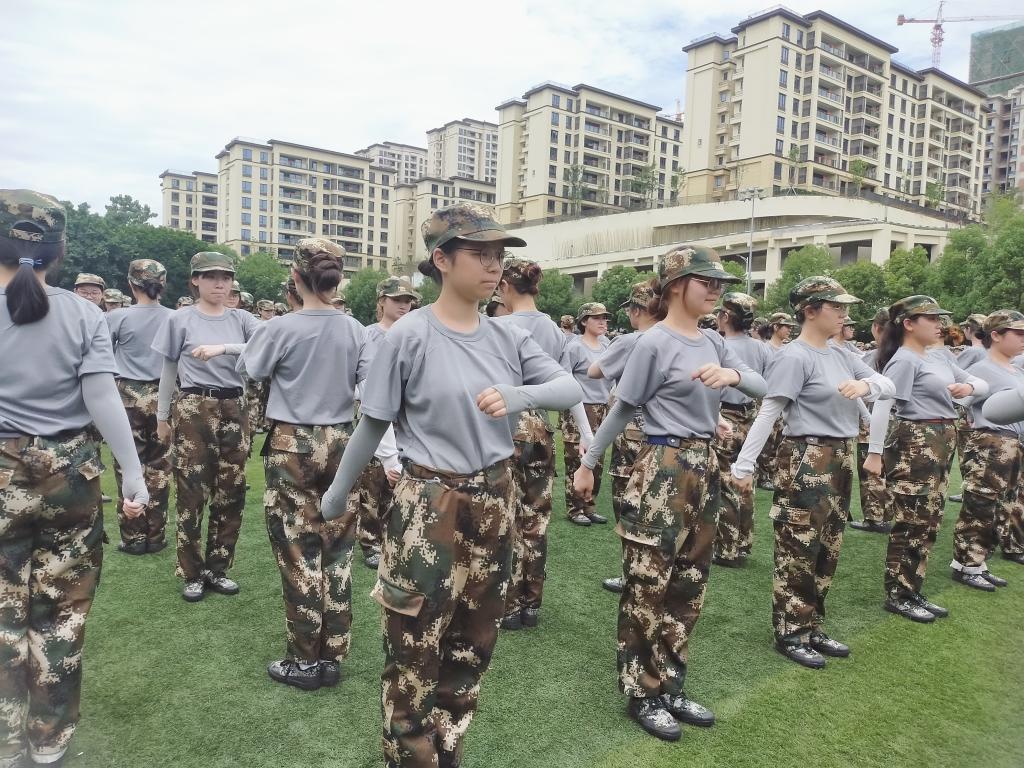 刚刚进入七月的重庆,阴雨绵绵,空气闷热。清晨8点团长一声号令“军训开始”,闷热潮湿的空气便被一声声“一二”声打破。阵雨让7月的重庆更显闷热,地板的湿滑和闷热的空气都无法阻挡2022级学子有条不紊的训练。且看少年体魄与滚烫志向产生共鸣,整齐的训练声奏唱出敢教日月换新天的气势。