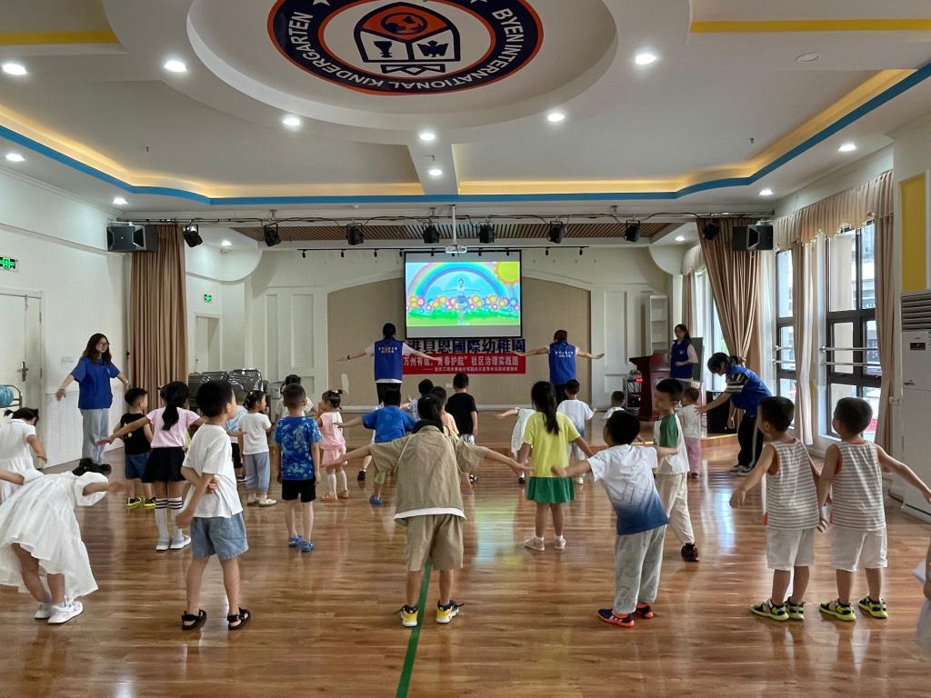 2023年7月7-10日,为期4天的以陪伴重庆市万州区大河沟社区青少年儿童成长,打造安全、学习、教育、成长的暑期乐园为目的的“万州有我,青春护航”主题夏令营活动,在大河沟社区幼儿园落下帷幕。来自幼儿园的的30余名小朋友在k1体育向日葵青年志愿者服务队志愿者们的带领下,向家长们展示了这几天的学习成果,再次体验了多彩课堂的魅力与实践快乐,为夏令营活动画上了圆满的句号。