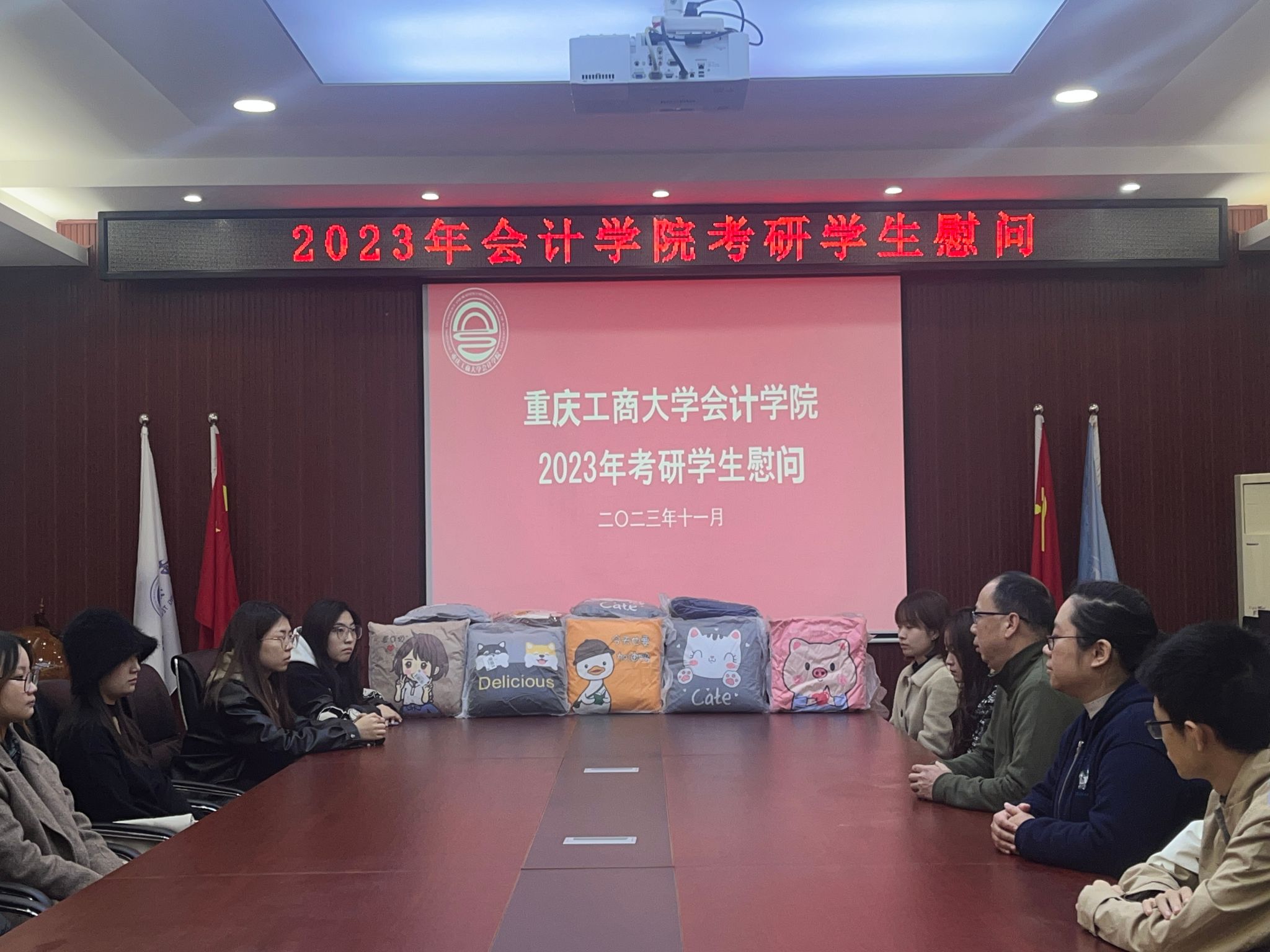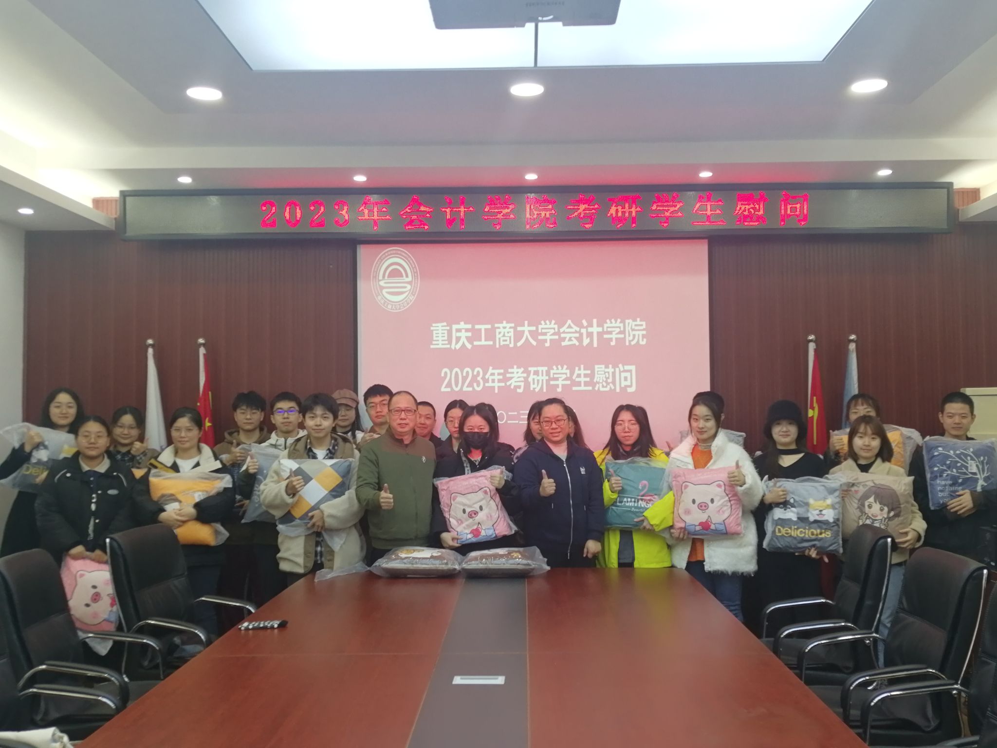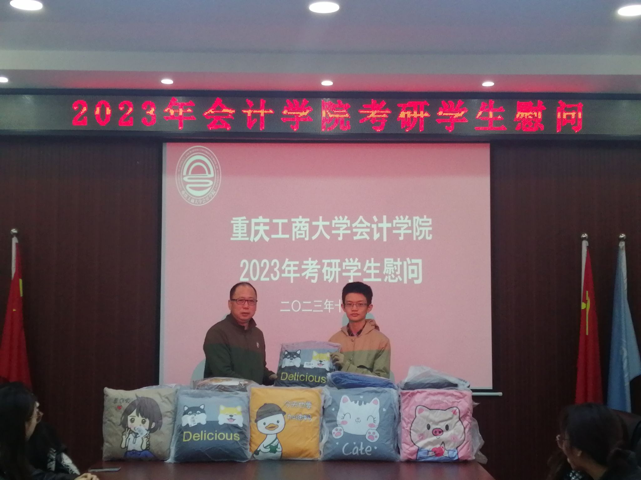 最后,学院领导和老师们为考研学子们送上了慰问品,祝愿同学们一战成硕,金榜题名。