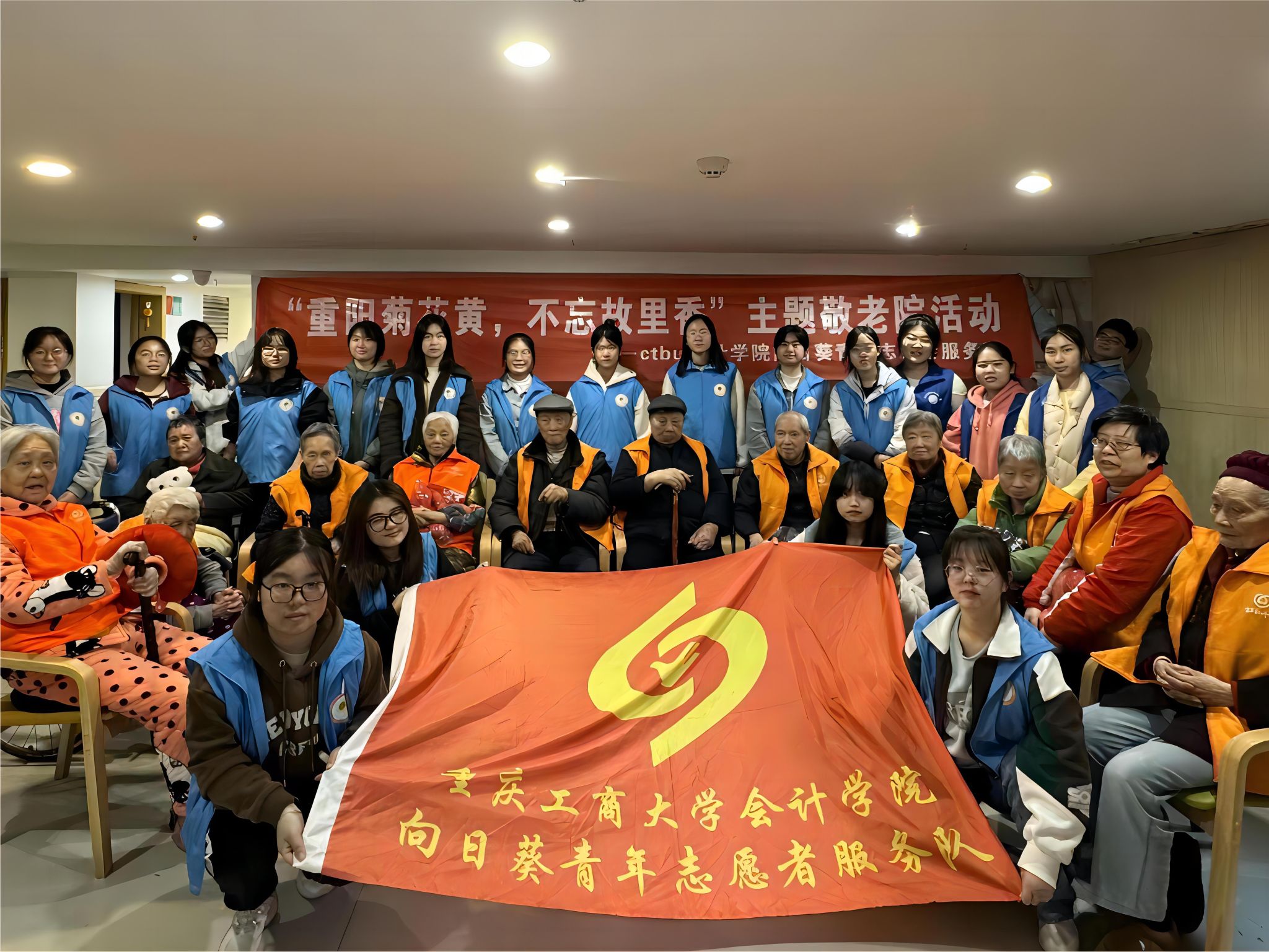 为进一步弘扬中华民族尊老、敬老、爱老的传统美德,传承中华孝道文化,为老人送去关怀和温暖,于温情中感受青春力量,k1体育向日葵青年志愿者服务队于2023年11月25日走进渝中区人民路曾家岩敬老院,开展了“重阳菊花黄,不忘故里香”敬老院活动。