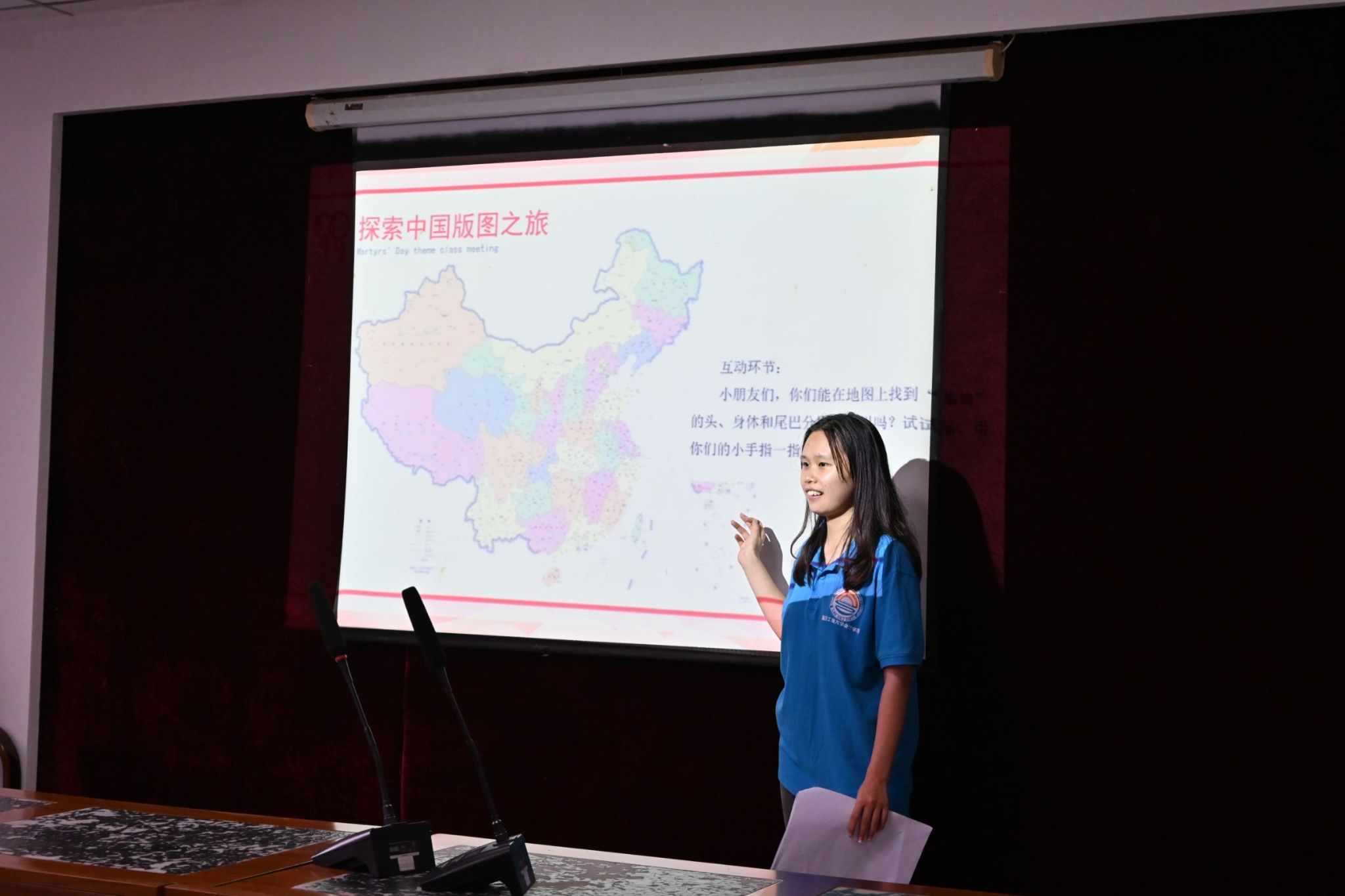 在时光的长河中,五千年不过转瞬即逝,而今少年又谱写了多少诗篇,德育课堂以“历史润童心,播撒千年韵”为主题开展,引领孩子们穿越时空的长河,追根溯源,探索源远流长的中华文明。从中国古代辉煌灿烂的文明史到近现代的沧桑巨变,从中国版图变迁中,窥见现代版图的基础,到各民族团结共进的历程,每一个历史故事都深深的触动孩子们的心,通过PPT+视频和志愿者的讲述,让孩子们深植家国情怀,种下爱国主义的种子。