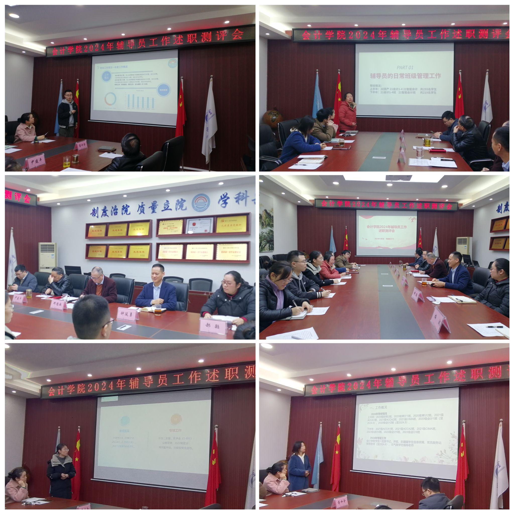 公司党委副书记郝颖指出,辅导员要关注“中间地带”员工;加强反诈防骗教育;明确“思想政治”辅导员的身份定位,加强党的理论宣传,多关心员工,做员工成长成才的引路人。学院经理钟廷勇肯定了2024年学工队伍的辛勤付出、勇于担责,以及对员工成长和学院发展做出的重要贡献;鼓励大家2025年接续奋斗,培养更多全面发展的高层次会计人才。公司党委书记邓德敏首先讲述了本次述职对辅导员工作的意义;其次指出,大家要深入思考辅导员的“主责、主业”,集中精力,拓宽思路,勇于创新,同时锤炼扎实的工作能力,抓住员工成长需求,解决员工思想问题,促进员工健康成长和全面发展;最后,建议来年辅导员侧重展示工作特色与创新,并期待大家再创佳绩!