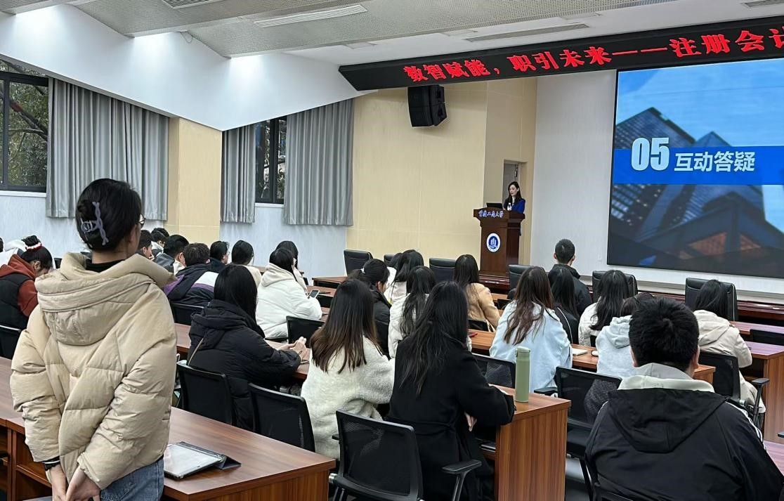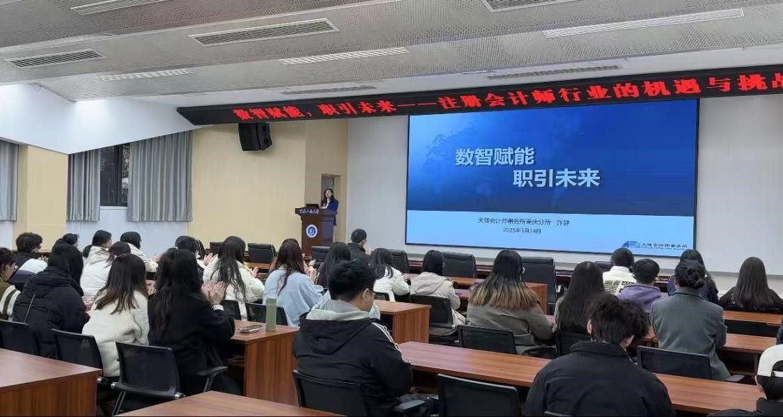 在数字化与智能化深度融合的背景下,企业对人才的需求持续迭代升级。许静老师以“硬技能与软实力双轮驱动职业发展”为主题,结合行业趋势与真实案例展开分享。她指出,专业能力虽是职场基石,但数智时代更需人才具备敏捷学习力、创新思维及跨领域协作能力。通过解析天健会计师事务所的“职业发展路径图”,她给同学们展示了企业人才从初级岗位到管理层的晋升逻辑,并强调“持续学习”与“适应变革”是职业可持续发展的关键。